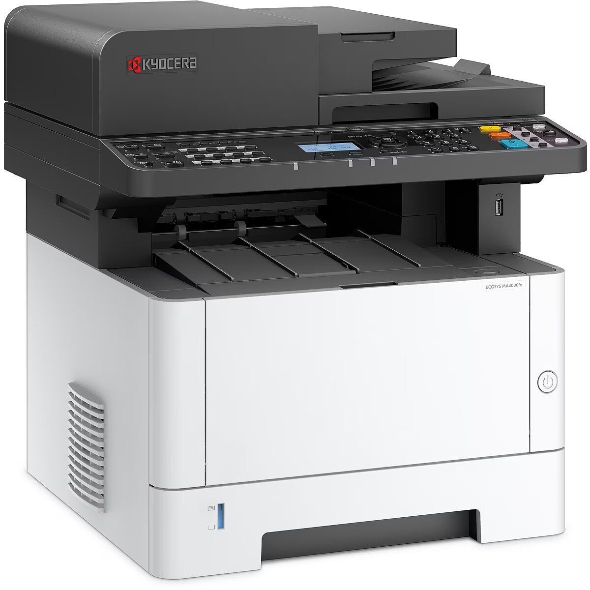 LongSummaryDescription - KYOCERA ECOSYS MA4000fx. Print technology: Laser, Printing: Mono printing, Maximum resolution: 1200 x 1200 DPI. Copying: Mono copying, Maximum copy resolution: 600 x 600 DPI. Scanning: Colour scanning, Optical scanning resolution: 600 x 600 DPI. Faxing: Mono faxing. Duplex functions: Copy, Fax, Print, Scan. Maximum ISO A-series paper size: A4. Direct printing. Product colour: Black, White