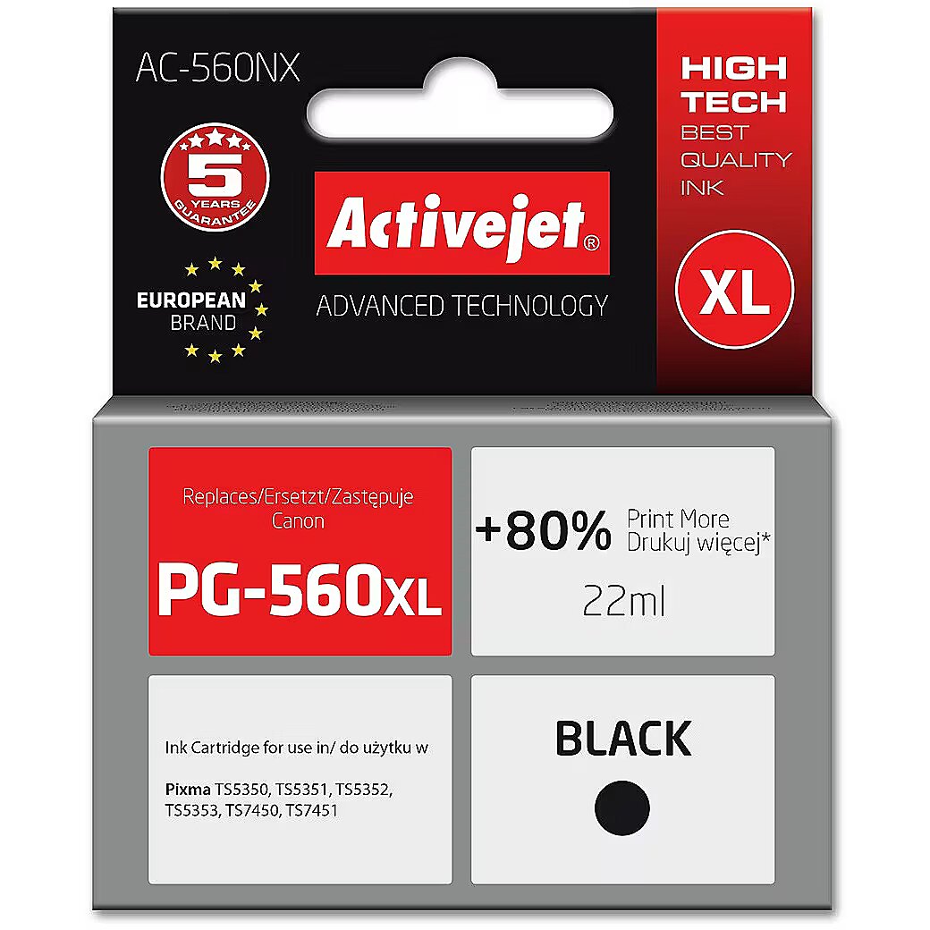 ActiveJet AC-560NX Printer Ink for Brother, Replacement Canon PG-560XL; Supreme; 22 ml; black