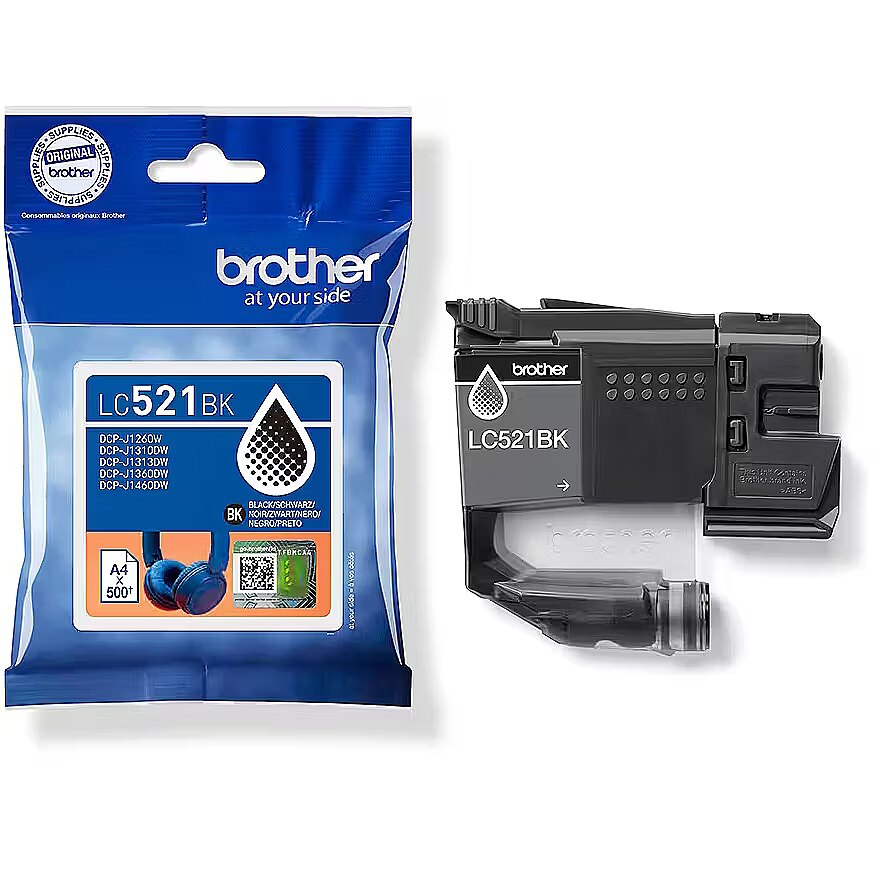 LongSummaryDescription - Brother LC521BK Genuine Ink Cartridge - Black. Supply type: Single pack, Printing colours: Black, Quantity per pack: 1 pc(s), Black ink page yield: 500 pages