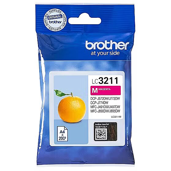 LongSummaryDescription - Brother LC3211M. Piegādes veids: Krāsu tintes lappušu apjoms: 200 lappuses, Drukāšanas krāsas: Krāsu skaits iepakojumā: Magenta, Daudzums iepakojumā: Iepakojumā: 1 gab.
