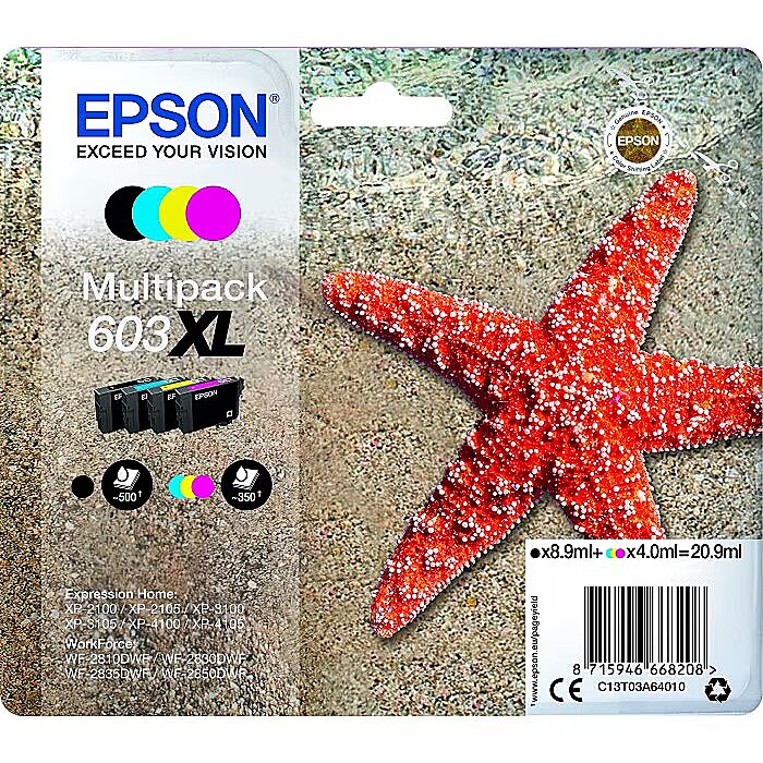 LongSummaryDescription - Epson C13T03A64010. Cartridge capacity: High (XL) Yield, Black ink volume: 8.9 ml, Supply type: Multi pack, Colour ink volume: 4 ml, Printing colours: Black, Cyan, Magenta, Yellow, Quantity per pack: 1 pc(s)