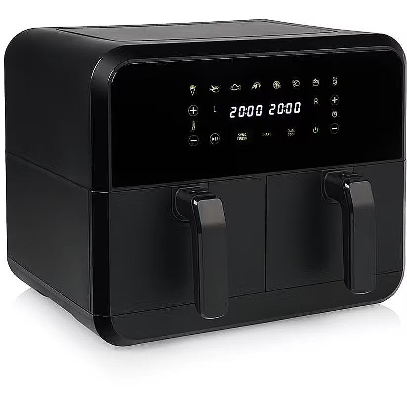 LongDesc - Ar šo gaisa fritēzi ar diviem groziem varat vienlaikus pagatavot divu veidu ēdienus. Šī fritēzera kopējais tilpums ir 8 l, jauda 2400 W un sinhronizācijas apdares funkcija. Jūsu pilnvērtīgas vakariņas būs gatavas vienā piegājienā!