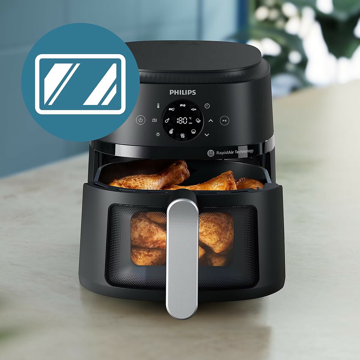 LongDesc - Watch as you cook tasty dishes effortlesslyCrispy outside, tender inside. Unique RapidAir technology saves time and energy, without compromising on taste. Watch through the cooking window while your favorite ingredients turn into delicious food in under 20 minutes.Cooking window• Cooking window to watch while you cookEasy to use• 13 cooking methods at the touch of a button• Quick and easy cleanup• Touchscreen for effortless control• Tasty recipes tailored to your Airfryer in our HomeID AppEasy to use• Perfect size for any kitchen with a 4.2 L panLess oil• Deliciously crisp with RapidAir technology• Enjoy healthy food with up to 90% less fatTime and energy saving• Save time and lower your energy bills