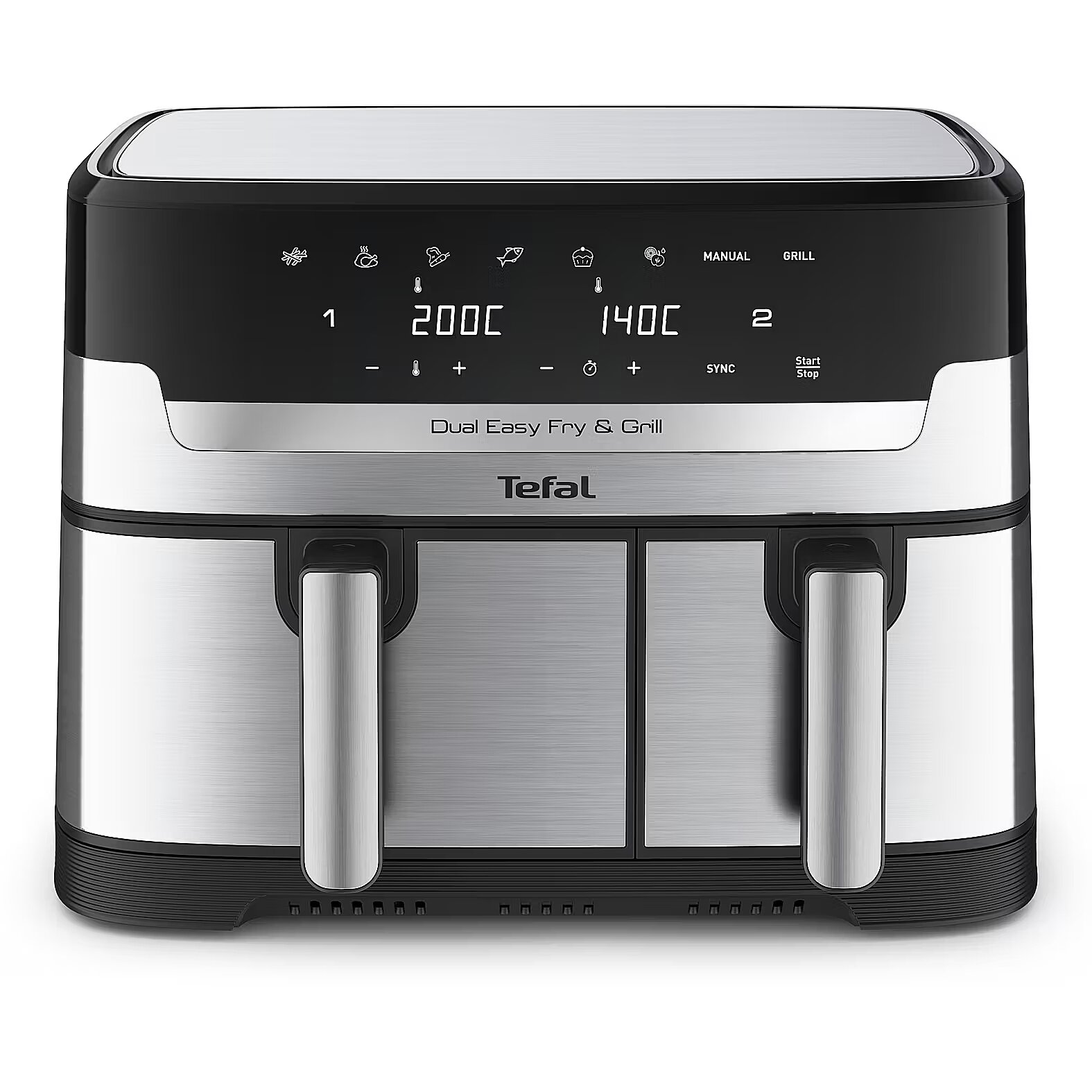 ShortSummaryDescription - Tefal Dual Easy Fry & Grill EY905D, Hot air fryer, 8.3 L, Double, Stainless steel, Touch, Stand-alone