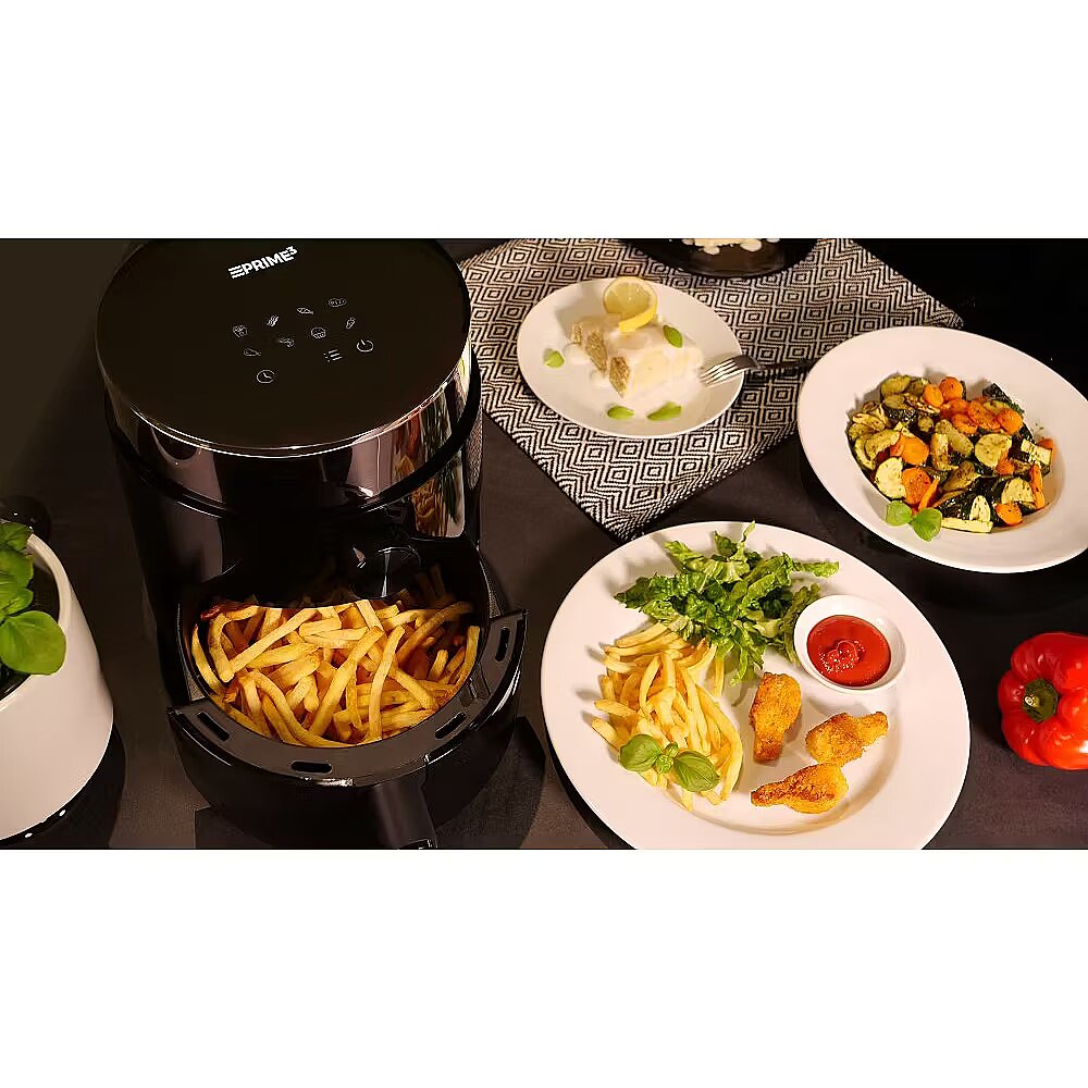 Z frytkownicą beztłuszczową w łatwy sposób przygotujesz pyszne, chrupiące z zewnątrz i miękkie w środku frytki. Technologia RAV (Rapid Air Vortex) Dotykowy panel sterowania z wyświetlaczem LED Kosz o pojemności 2.5l Frytkownica beztłuszczowa SAF31 marki PRIME3 pozwoli Ci przygotować pyszny i zdrowy posiłek dla całej rodziny bez lub przy użyciu niewielkiej ilości oleju wykorzystując do gotowania, smażenia, czy opiekania gorące powietrze. W tym kompaktowym modelu przyrządzisz nie tylko frytki, ale także mięsa, ryby, warzywa, które będą posiłkiem dużo zdrowszym aniżeli ten przygotowywany na dużej ilości oleju, który nie sprzyja naszemu zdrowiu i naszej sylwetce.