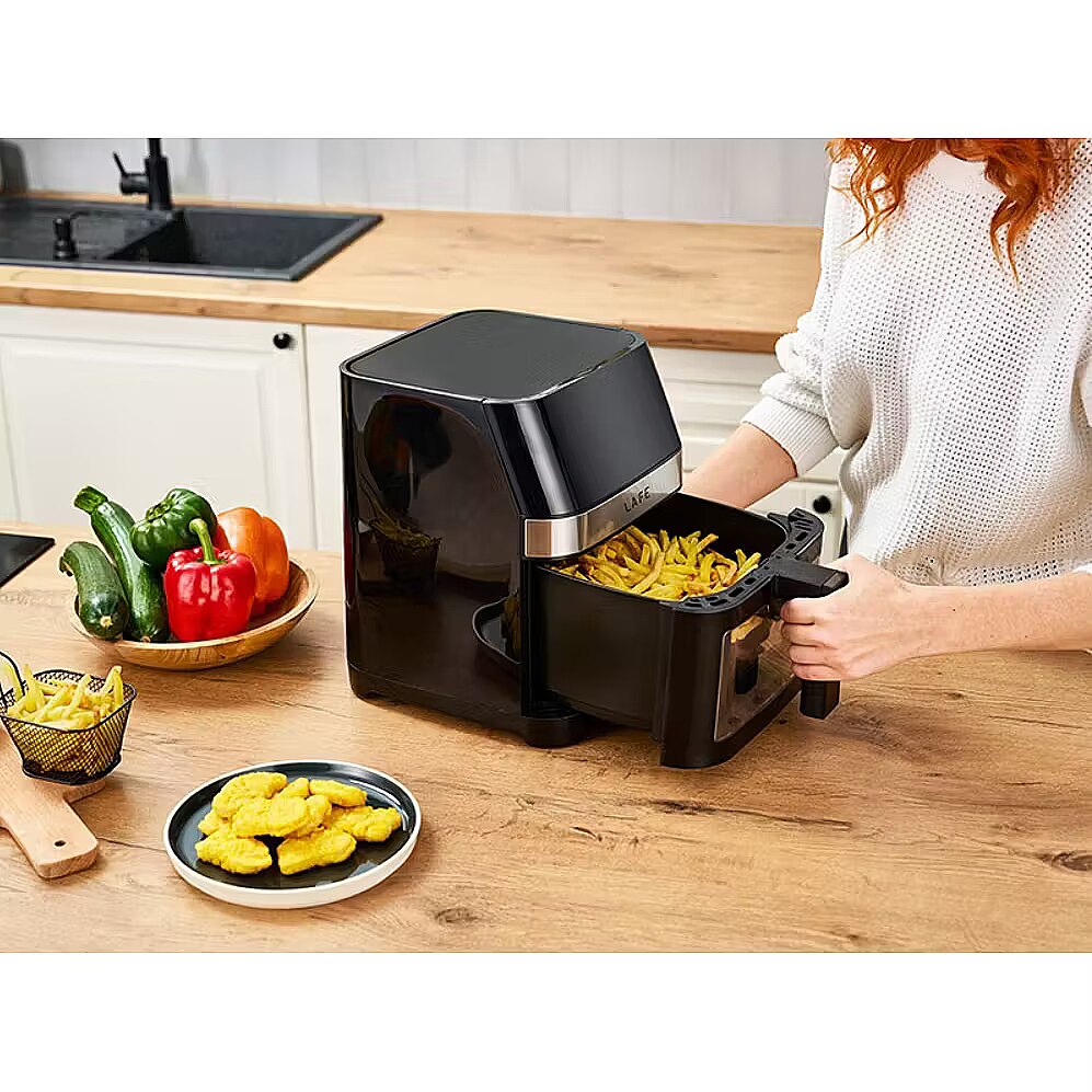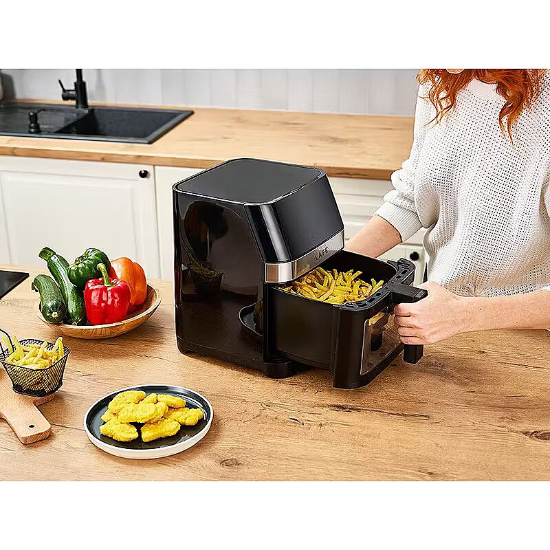 Apraksts - Veselīga un garšīga gatavošana Lafe MasterFry fritēze bez taukiem ir moderna ierīce, kas ļauj pagatavot gardus un veselīgus ēdienus bez eļļas. Tā ir ideāli piemērota ikvienam, kas novērtē veselīgu dzīvesveidu un ērtības. 5 l ietilpība Liela ietilpība ļauj pagatavot lielākas porcijas, kas lieliski piemērotas visai ģimenei. Temperatūras diapazons 80-200 grādi Plašais temperatūras diapazons ļauj precīzi regulēt karstumu atbilstoši dažādiem ēdieniem, nodrošinot ideālus gatavošanas rezultātus. Jauda 1500 W Fritēzes lielā jauda nodrošina ātru un vienmērīgu karsēšanu, samazinot gatavošanas laiku. Atkausēšanas funkcija DEFROST Ļauj ātri un droši atkausēt ēdienu, kas ir īpaši noderīgi ikdienas ēdienu gatavošanā. 7 automātiskās programmas Izvēlieties kādu no 7 iebūvētajām programmām, lai viegli un ātri pagatavotu dažādus ēdienus bez nepieciešamības iestatīt parametrus. LCD displejs Intuitīvais LCD displejs ļauj viegli kontrolēt iestatījumus un uzraudzīt gatavošanas procesu. Trauku pārklājums ar nelīpošu pārklājumu Nodrošina vieglu tīrīšanu un novērš ēdienu pielipšanu, padarot gatavošanu vēl patīkamāku. Lafe MasterFry fritēze ar nelīpošu virsmu ir ideāla ierīce tiem, kas vēlas baudīt veselīgus un garšīgus ēdienus bez liekiem taukiem. Pateicoties tā modernajām funkcijām un mūsdienīgajam dizainam, tas ir neaizstājams palīgs jebkurā virtuvē.