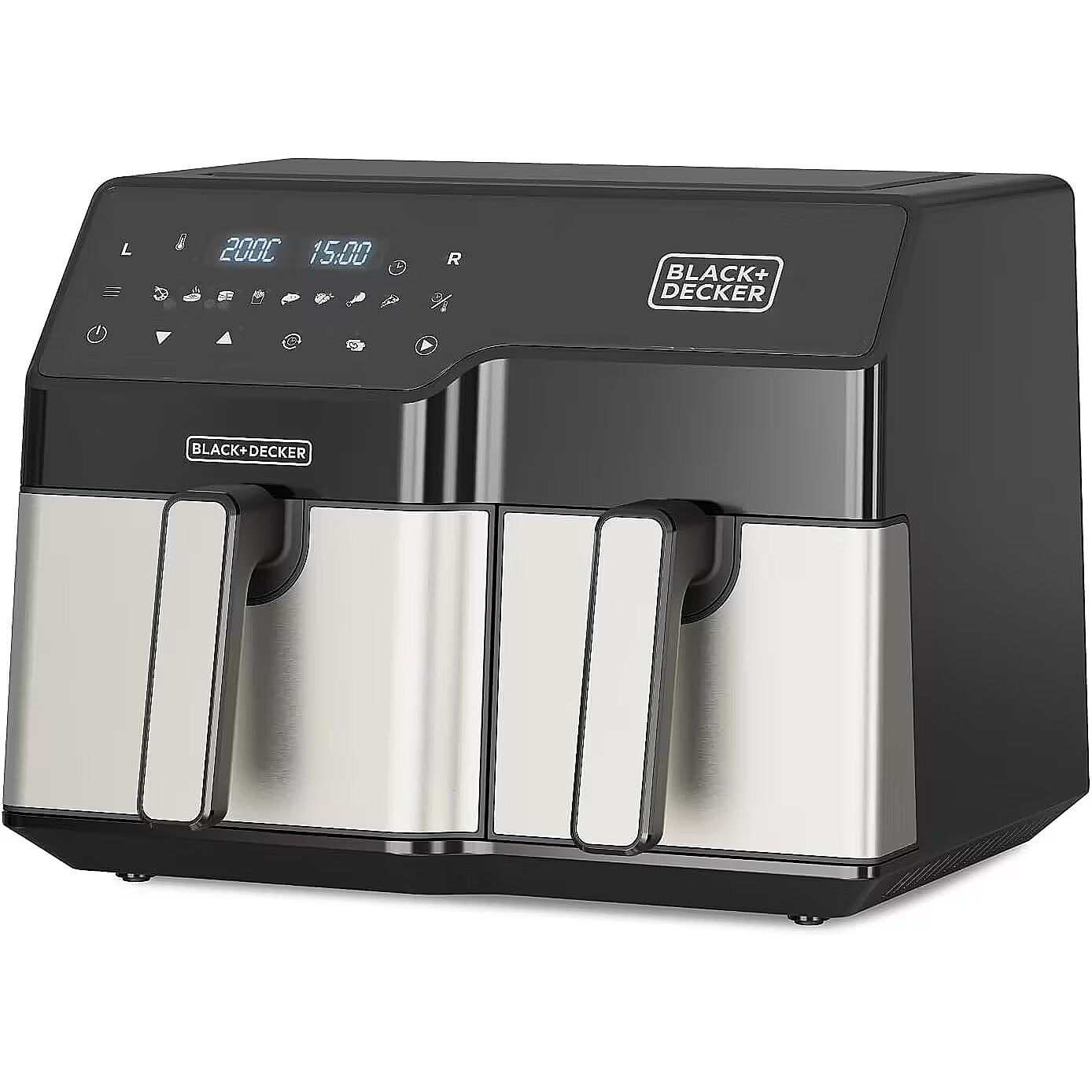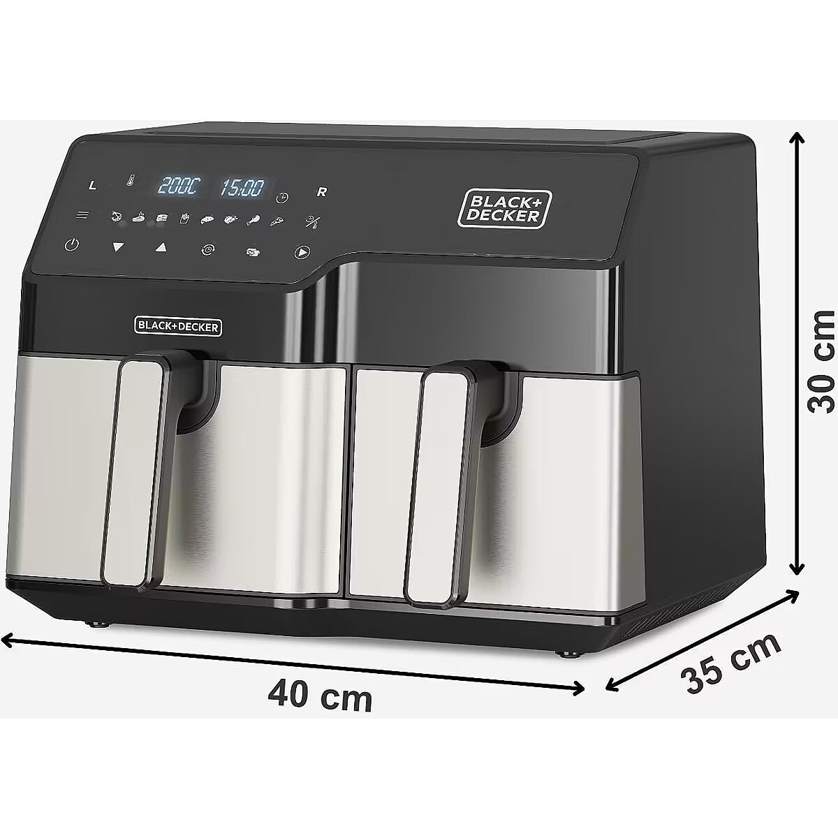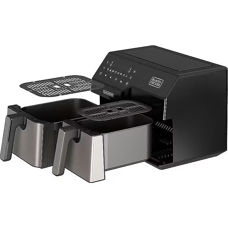 Black+Decker BXAF9000E Double Hot air fryer, 9L, Black/Stainless steel