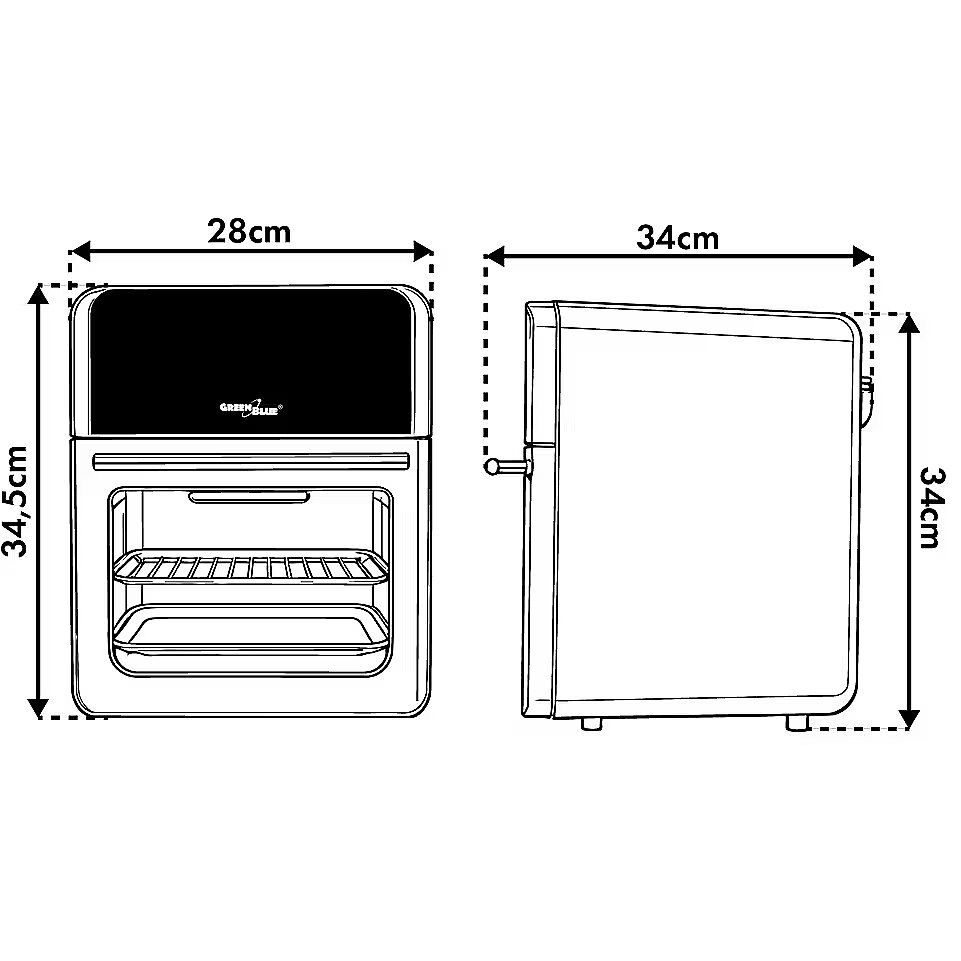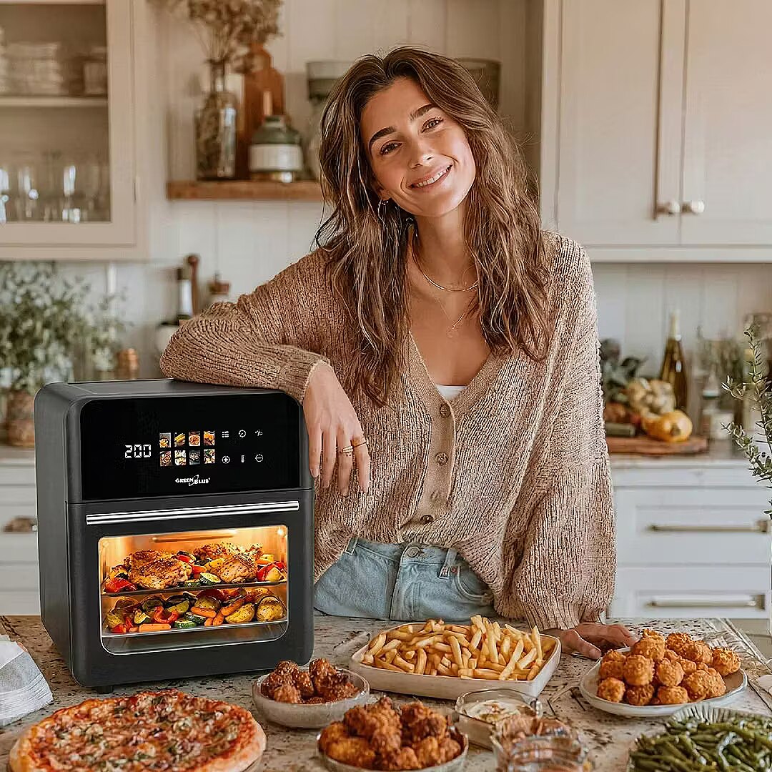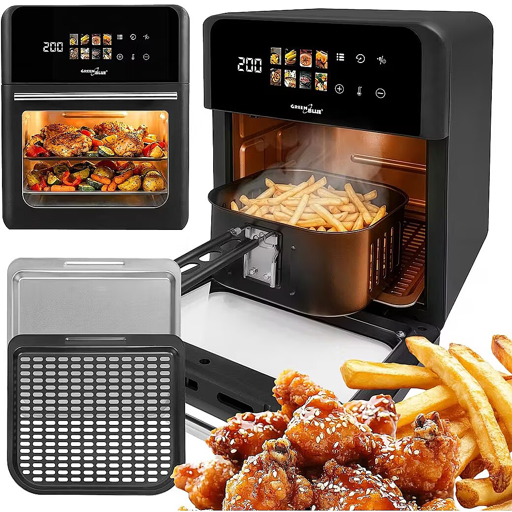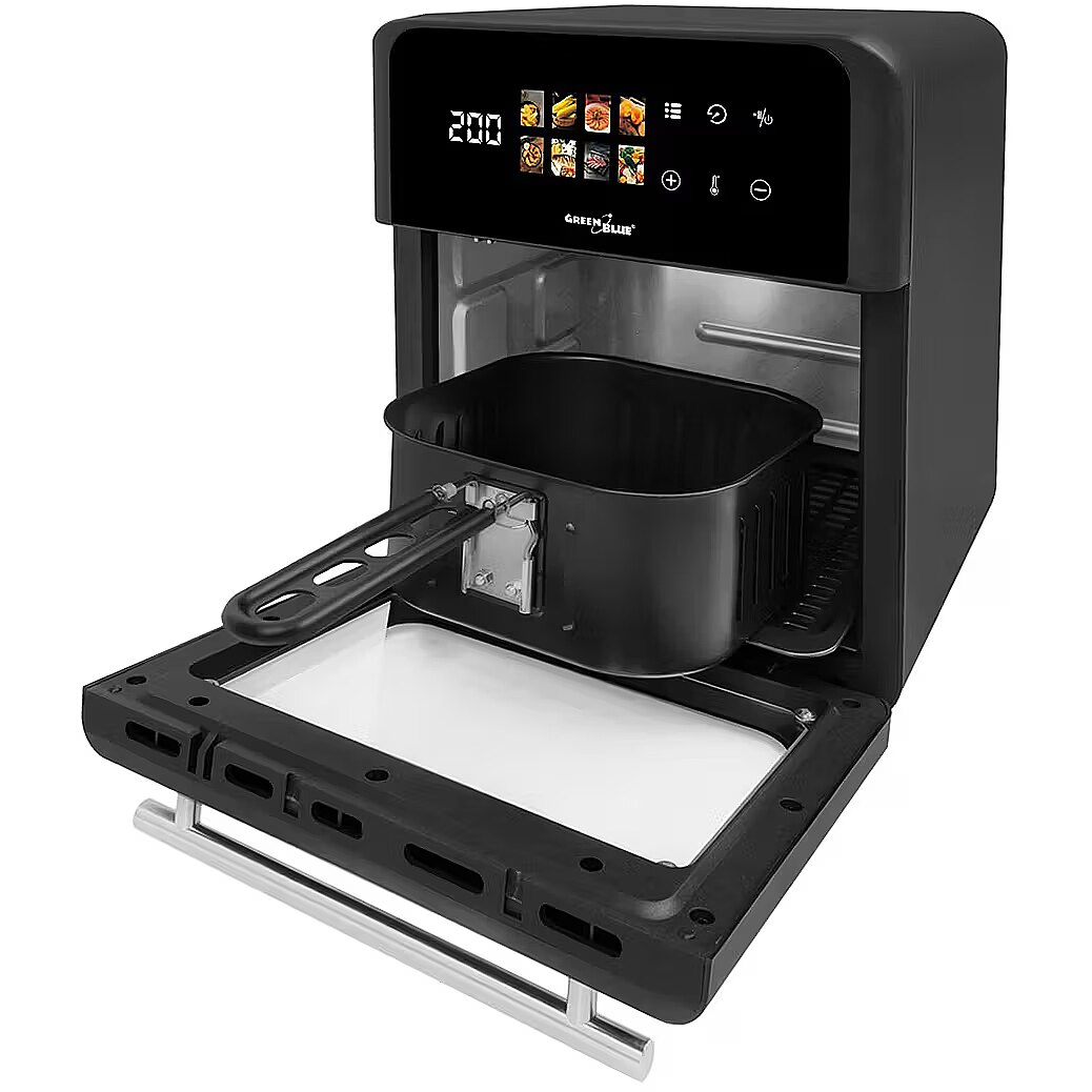 productName - GreenBlue AIR FRYER bez eļļas gaisa friteze, 1800 W, 10 l tilpums, 8 programmas, piederumi, taimeris, GB950