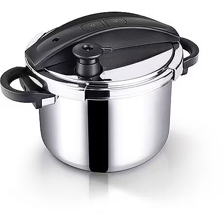 - Szybkowar wyposażony jest w manometr, zawór bezpieczeństwa, zawór bezpieczeństwa kontrolujący nadciśnienie i masywne uchwyty ułatwiające obsługę i zapobiegające oparzeniu