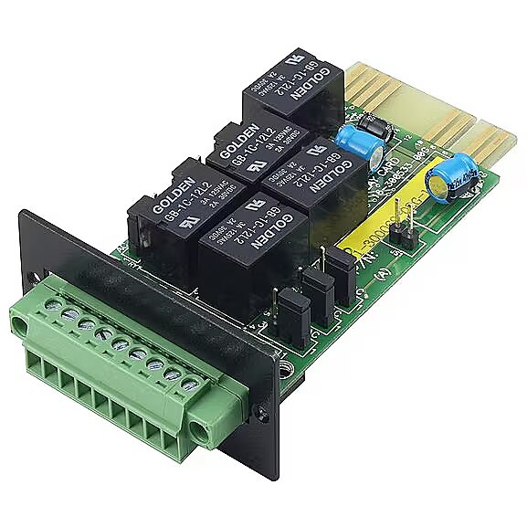 - Zapewnia zamknięte styki dla monitoringu UPS