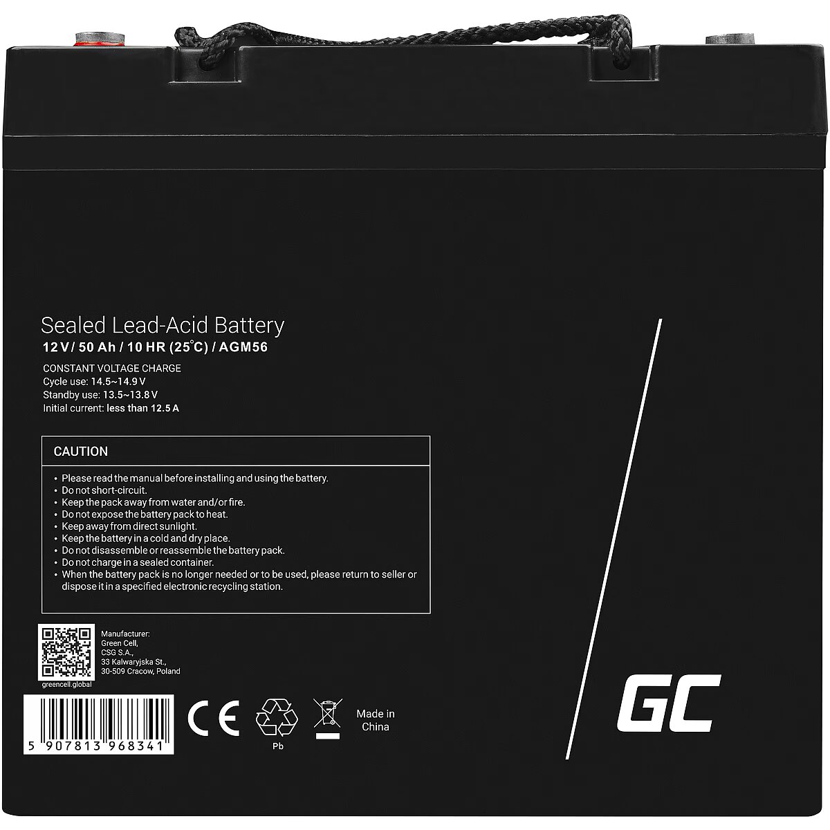 Green Cell AGM VRLA 12V 50Ah maintenance-free battery for boats, scooters, camper vans, wheelchairs, lawnmower