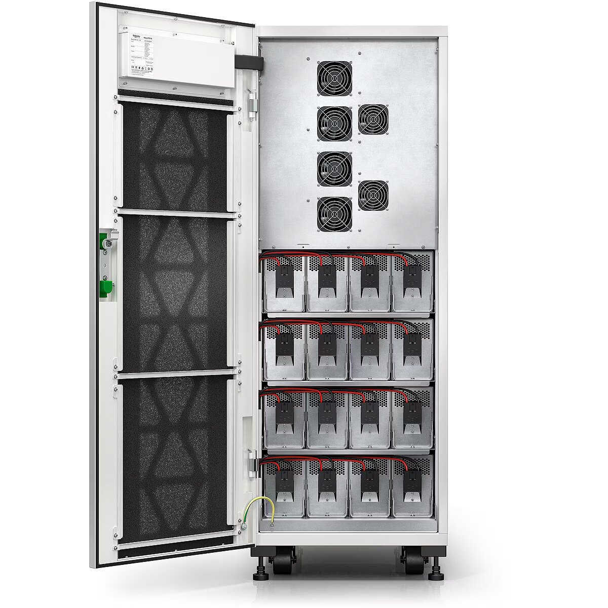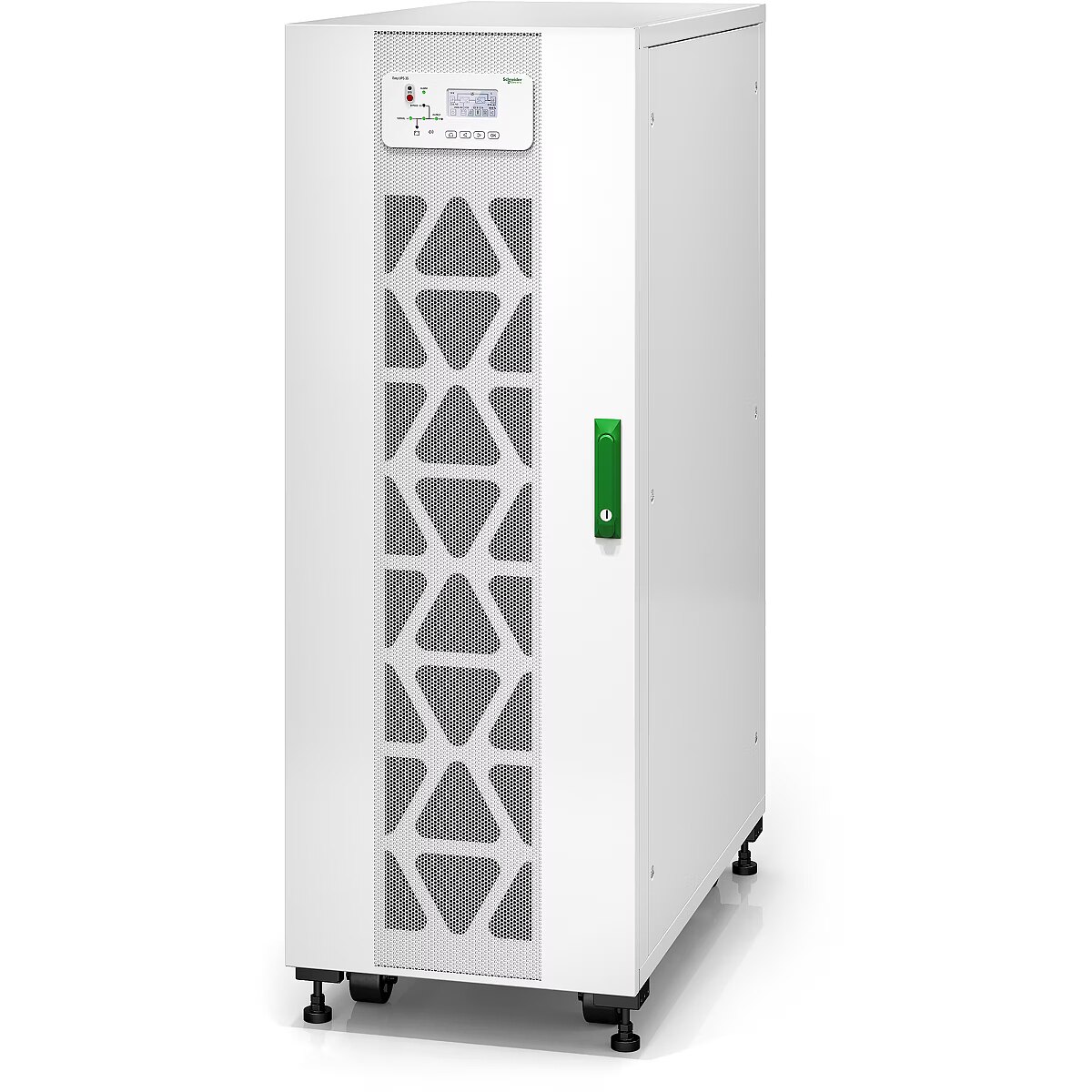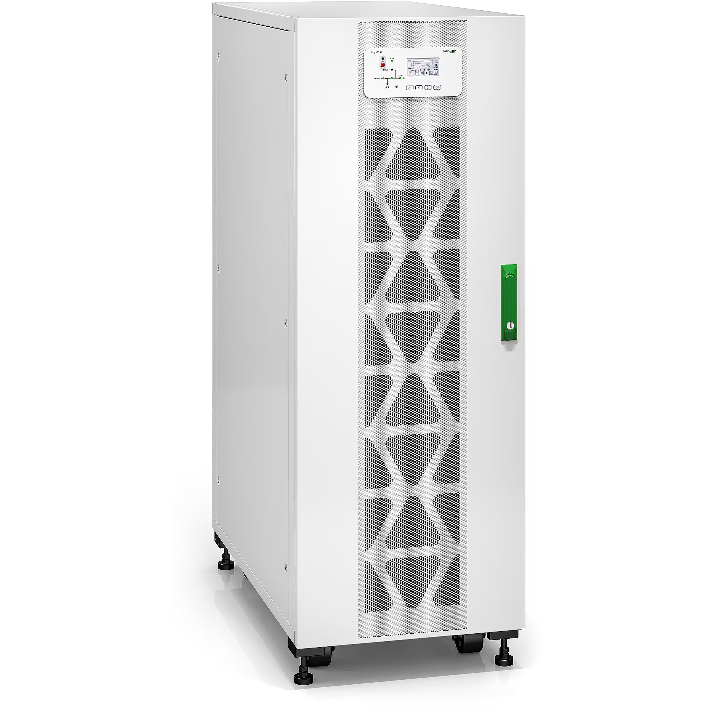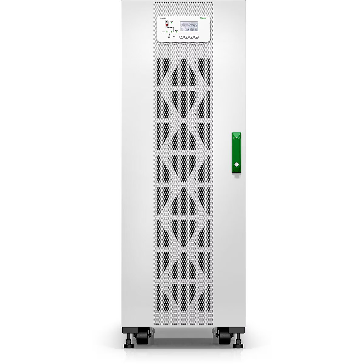 LongDesc - Easy UPS 3S 30 kVA 400 V 3:3 400 V UPS iekšējiem akumulatoriemVisaugstas efektivitātes trīsfāzu UPS, kam ir uzlabotas produkta funkcijas, konkurētspējīgas specifikācijas un izturīgs elektriskais dizains, kas atvieglo darbības nepārtrauktību datu centrā vai elektriskā telpā. Šis ir ārkārtīgi viegli uzstādāms, darbināms, uzturējams un apkalpots 30 kVA UPS, kas ir ideāli piemērots maziem un vidējiem uzņēmumiem. Komplektā ir iekļauts putekļu filtrs un plātnes ar atbilstības pārklājumu, kas paredzēts darbam skarbā vidē. Šis UPS ir paredzēts iekšējiem akumulatoriem, bet tiek piegādāts bez akumulatoriem, tāpēc varat viegli pielāgot akumulatora darbības laiku. Sīkāku informāciju par akumulatoru darbības laiku skatiet darbības laika diagrammās, kas publicētas cilnē Dokumenti.