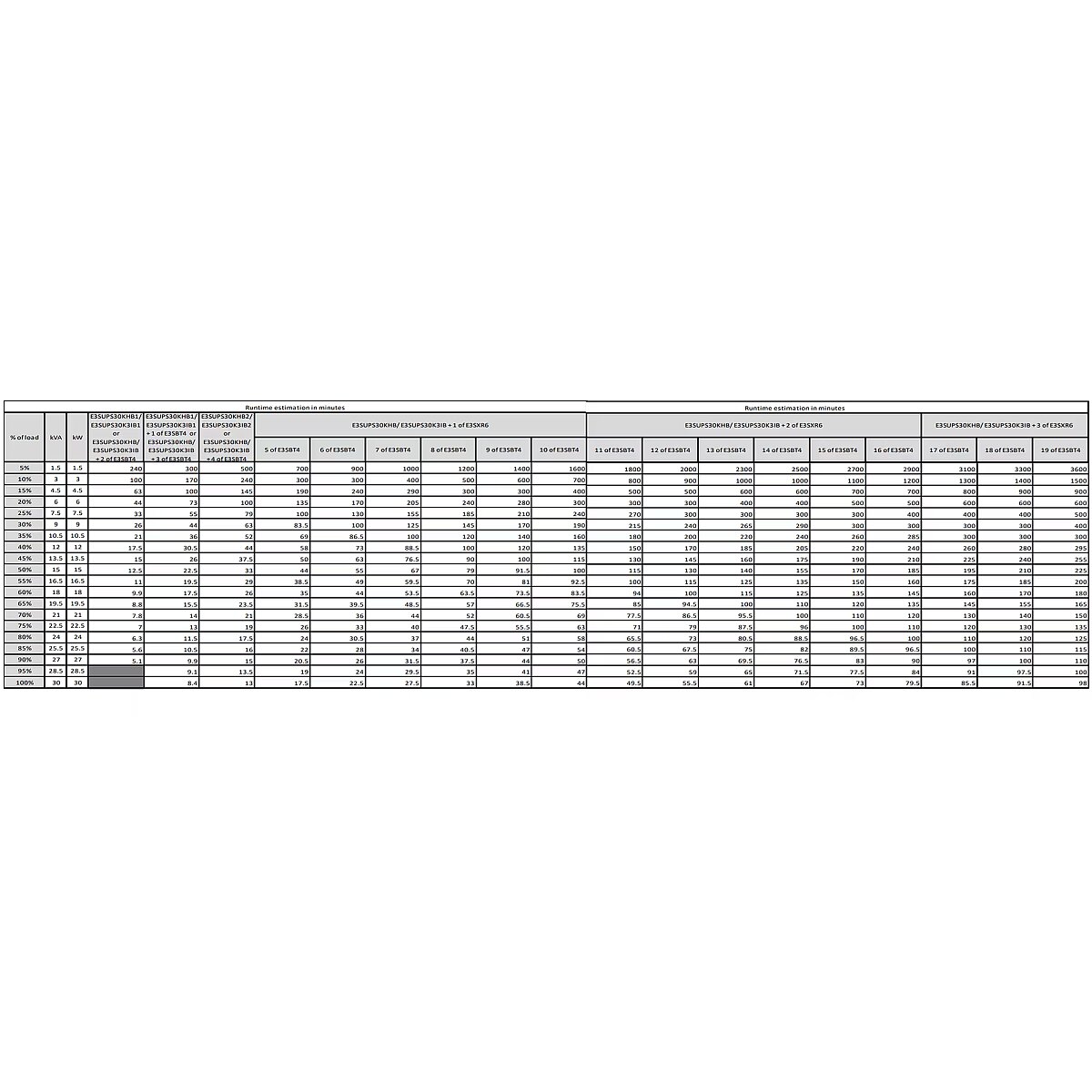 LongDesc - Easy UPS 3S 30 kVA 400 V 3:3 UPS for internal batteriesHigh-efficiency 3-phase UPS that features advanced product features, competitive specifications, and robust electrical design, making business continuity easy in the data center or electrical room. This is an exceptionally easy to install, operate, maintain, and service 30 kVA UPS, ideal for small and medium businesses. Includes dust filter and conformance-coated boards for harsh environments. This UPS is for internal batteries, but is supplied without batteries, so you can easily customize the battery runtime. For battery runtime details, see the runtime charts published under the Documents tab.