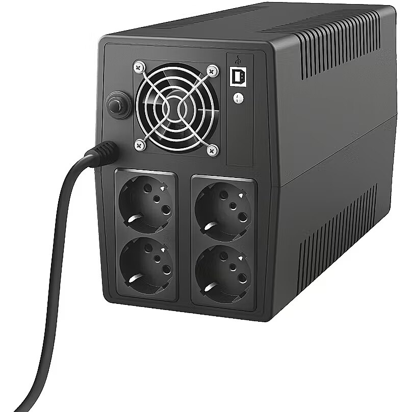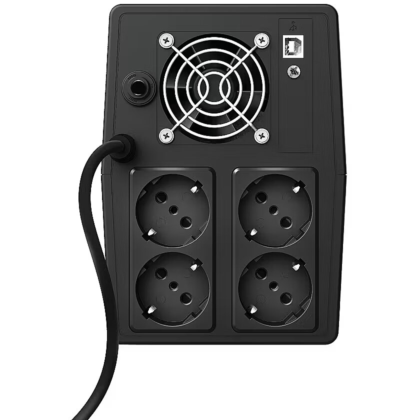 Apraksts - Paxxon 1500VA UPS ar 4 standarta sienas kontaktligzdām Uzticams 1500VA UPS ar iebūvētu akumulatoru Nodrošina pagaidu akumulatora enerģiju elektroenerģijas padeves pārtraukuma laikā; novērš datu zudumu un aparatūras bojājumus 4 sienas kontaktligzdas ar akumulatoru un aizsardzību pret pārspriegumiem, lai pieslēgtu datoru, datora perifērijas ierīces, tīkla aprīkojumu, plakanekrāna televizoru, mājas automatizācijas produktus vai signalizācijas sistēmu Pārsprieguma aizsargātas izejas, lai novērstu bojājumus, ko rada strāvas pārspriegumi, svārstības un svārstības USB ports un programmatūra UPS stāvokļa uzraudzīšanai, brīdinājumu nosūtīšanai un automātiskai datora izslēgšanai AVR funkcija nodrošina stabilu 230 V izejas spriegumu Skaidri skaņas signāli, kad pārtrūkst strāvas, lai jums būtu laiks saglabāt failus un izslēgt datoru Iebūvēta aizsardzība pret pārslodzi, izlādi un pārslodzi
