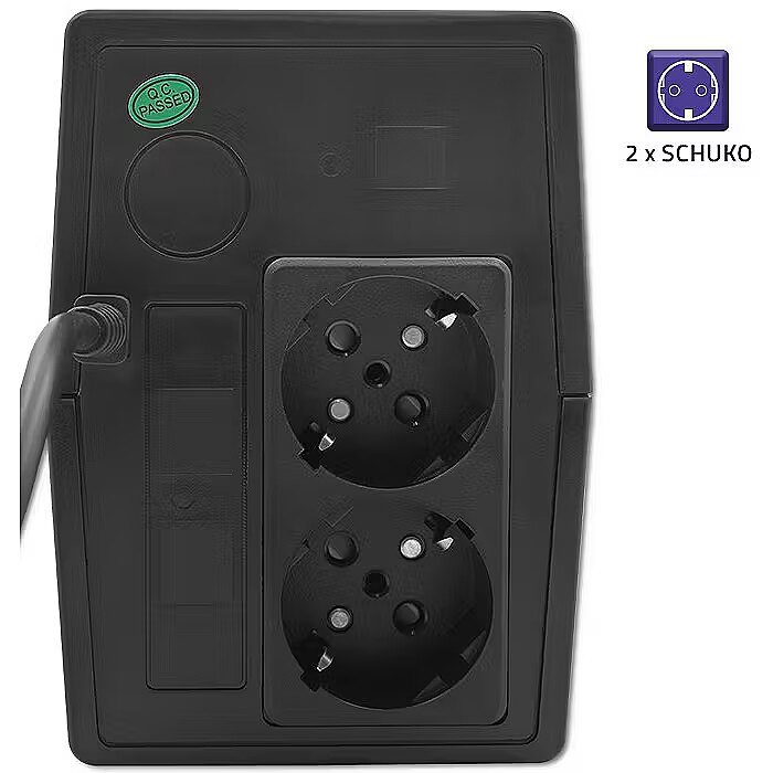 Our solution additionally offers: automatic voltage regulation (AVR) - it is not only a stable power supply and less battery consumption, but most importantly it protects your device from too high/low voltage, cold start - you are able to turn on, for example, a computer by plugging into the UPS itself. This allows you to quickly, for example, copy important files to a USB flash drive at any time, overload and short circuit protection.