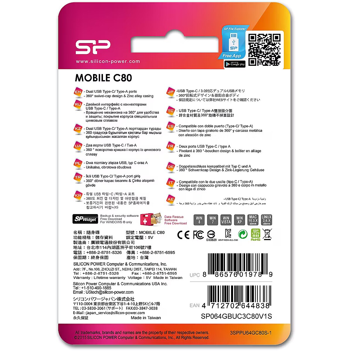 productName - Silicon Power Mobile C80 USB flash drive 64 GB USB Type-A / USB Type-C 3.0 (3.1 Gen 1) Titanium