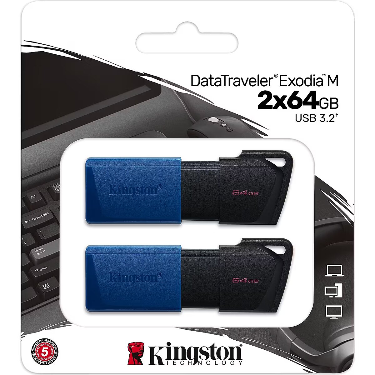 LongSummaryDescription - Kingston Technology DataTraveler 64GB USB3.2 Gen 1 Exodia M (Black + Blue) - 2 Pieces. Capacity: 64 GB, Device interface: USB Type-A, USB version: 3.2 Gen 1 (3.1 Gen 1). Form factor: Slide. Weight: 20 g. Product colour: Black, Blue