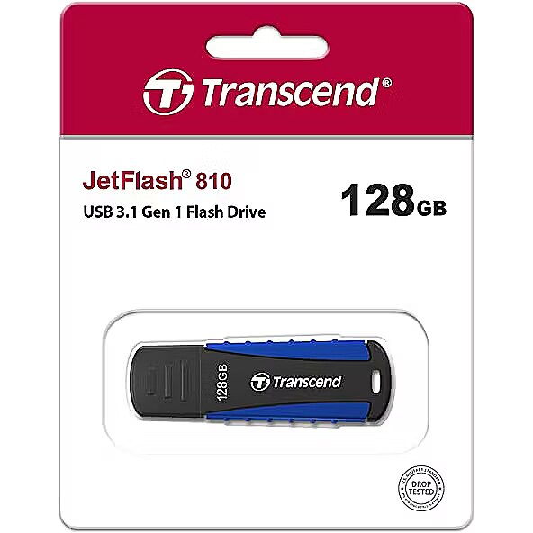 Description - Transcend's JetFlash 810 Flash drive combines blazing-fast USB 3.1 Gen 1 transfer rates, impressive storage capacity, and compact portability, and bundles them all in a stylish yet rugged design. Created specifically to fully protect your data while on the go, the JetFlash 810's rubber housing offers excellent defense against shock, splash, dust, and moisture. SuperSpeed USB 3.1 Gen 1 interface Meets U.S MIL-STD-810G 516.6 military drop-test standards Rugged rubber design to be resistant to dust and splash Sporty color scheme that is highly eye-catching in outdoor environments Exclusive Transcend Elite data management software