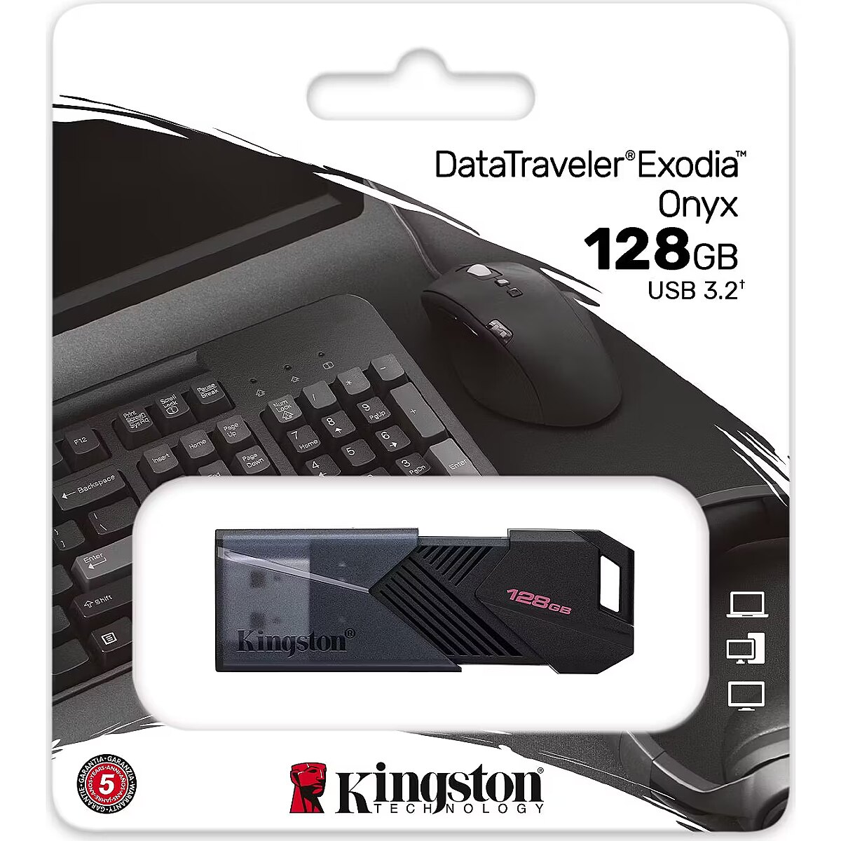 LongDesc - Kingston DataTraveler® Exodia™ Onyx is a USB 3.2 Gen 1 compliant** flash drive that delivers quick transfers for simple and easy storage. Designed with a sleek matte black casing, the DT Exodia Onyx is the perfect affordable companion for stylish storage. The drive is available in capacities up to 256GB*. Refined yet functional designSleek matte black casing paired with a moving cap protects USB connector and your data when not in use.Reliable performanceThe lightweight USB 3.2 Gen 1 compliant** storage solution delivers quick file transfers.Ultimate portabilityLoop easily attaches to key rings for perfect on-the-go storage.