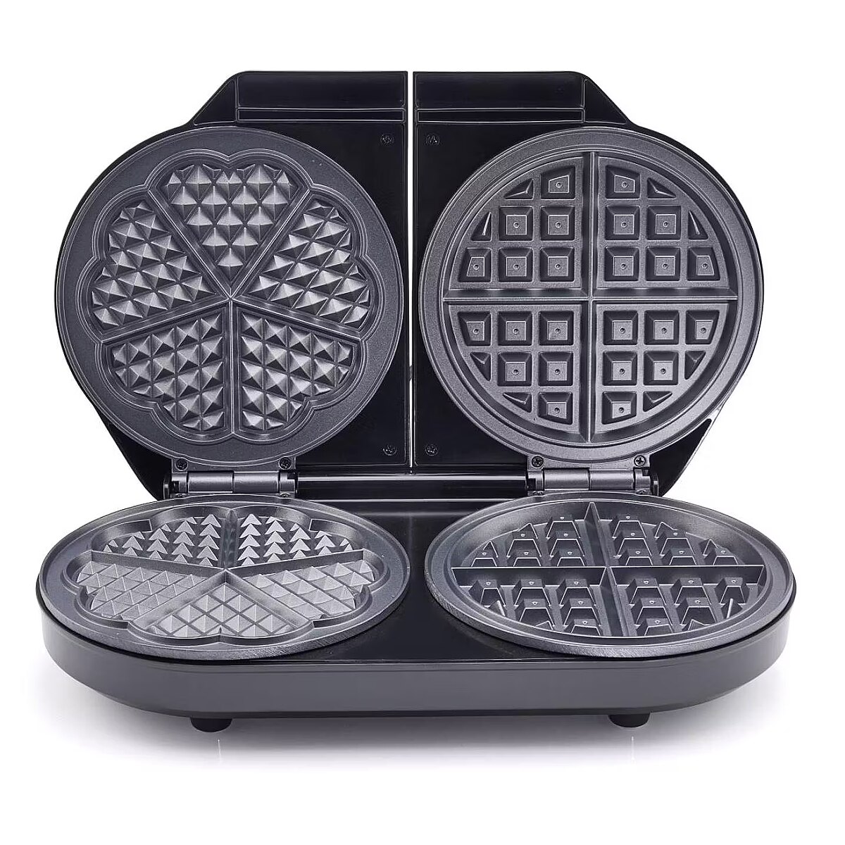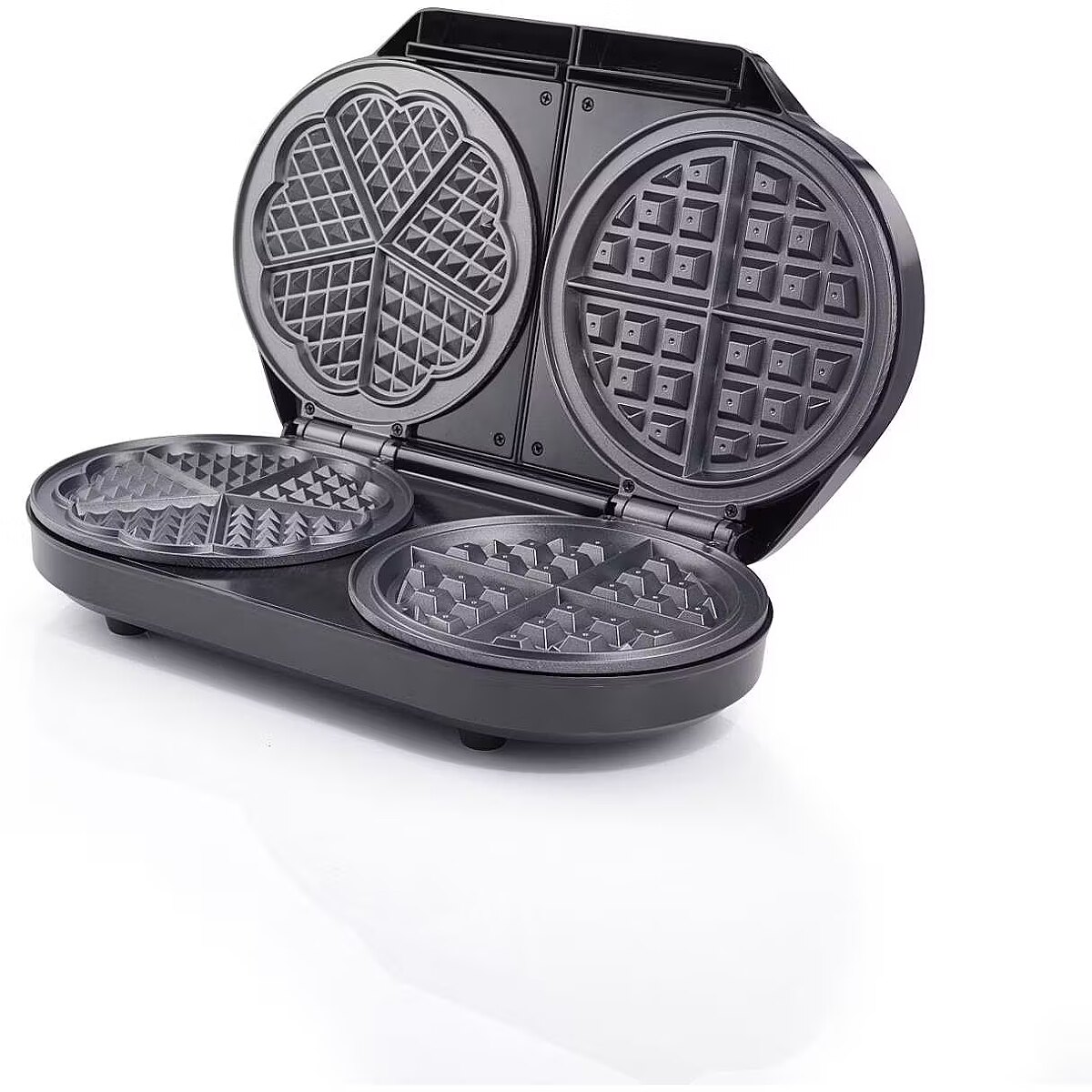 LongDesc - Adjust temperature Separately for each plate Adjust the temperature individual for each waffle batch. Power and ready light indicators will show you when the waffle maker is ready to use. The 5 browning settings allow each waffle to be crisped according to preference. Cooking time depends on set level, but it is usually within 5 minutes.Easy to use and clean All plates are made of solid aluminium alloy and treated with non-stick coating. The plates are scratch resistant and easy to clean. After the plates cool down just give them a swipe with a cotton cloth.