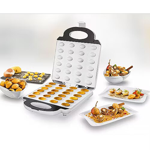 LongDesc - Neatkarīgi no tā, vai tie ir saldie klasiskie Oreški (krievu raganu lazdu rieksti) vai pikantā versija ar sātīgu pildījumu: raganu lazdu vafeļu pagatavošanas ierīce ar automātisku temperatūras kontroli dažu minūšu laikā nodrošina 24 kraukšķīgas vafeļu pusītes, kuras pēc tam var pildīt pēc garšas. Plāksnes ar keramikas pārklājumu un mīklas savākšanas rievs nodrošina vieglu tīrīšanu, bet karstumizolētais vēss pieskāriena rokturis ar iebūvētu bloķēšanas mehānismu, funkciju kontroles indikators un pretslīdošas kājas nodrošina drošību. Var uzglabāt vertikālā stāvoklī, lai taupītu vietu. Recepšu idejas var atrast lietošanas instrukcijā.