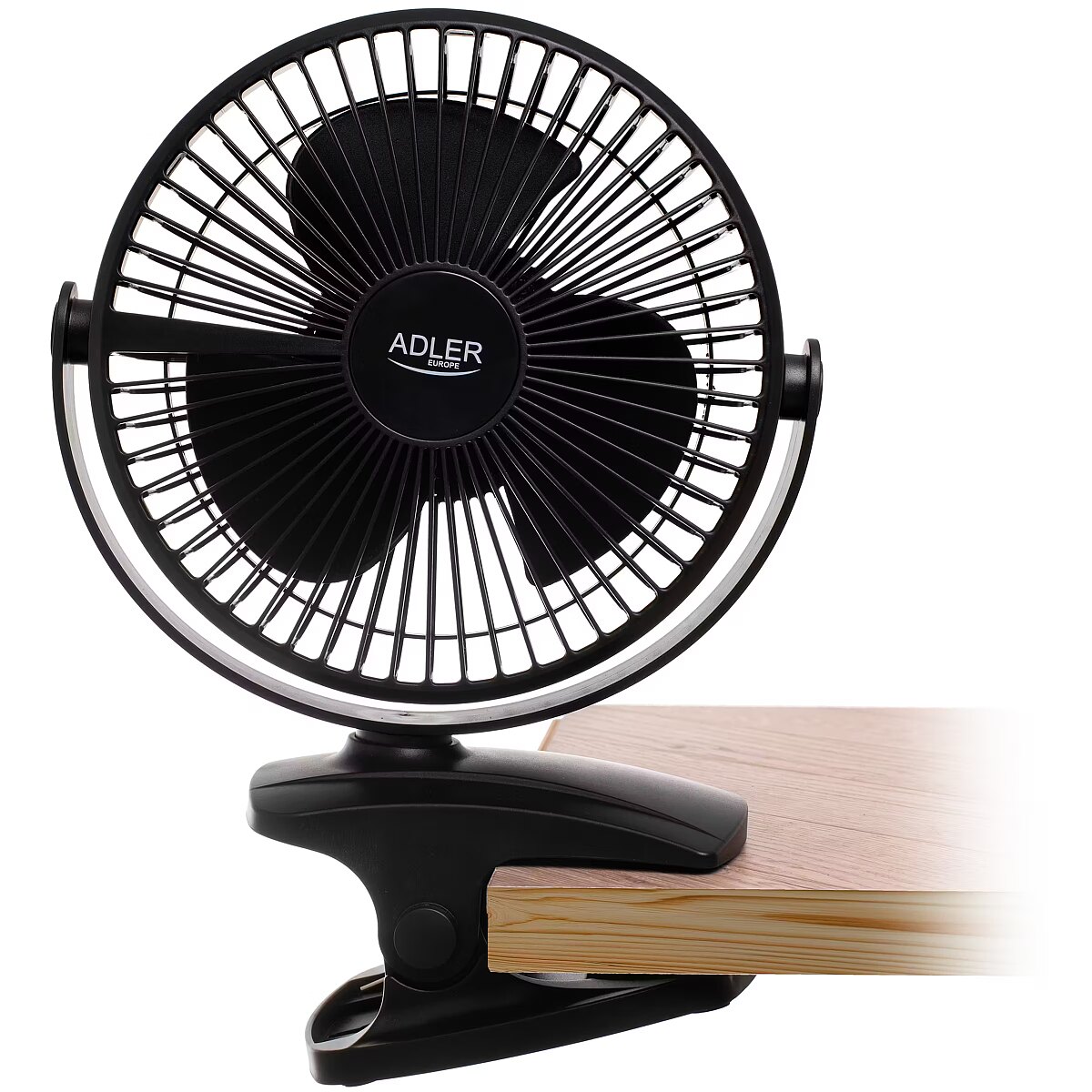 Adler Rechargeable Clip-on Desk Fan | AD 7342 | Table Fan | Black | Diameter 15.5 cm | Number of speeds 3 | Oscillation | 5 W
