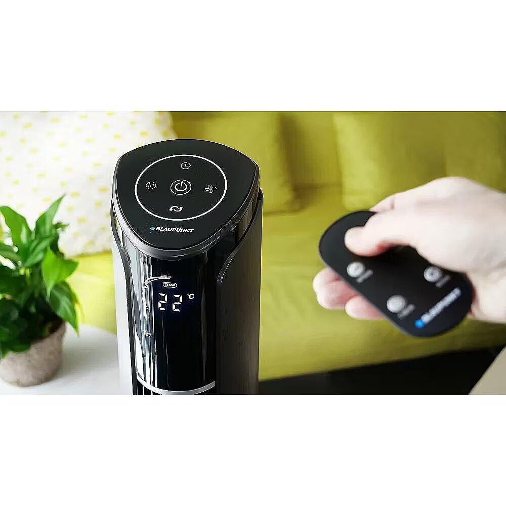 Description - AFT801 column fan The hot summer months are a constant fight against rising temperatures. We suffer from heat at home and in the office. A very useful device in such moments is a column fan. Elegant and at the same time very efficient, it will be the perfect complement to the interior. It takes up less space than classic fans, and is also slimmer and its colors are appropriately subdued. The AFT801 column fan by Blaupunkt is a modern device that will support us on days when the temperature exceeds the comfortable level for our body, providing a very strong air stream at the maximum fan speed. Thanks to three levels of airflow speed and four available operating modes, we can adjust the fan operation to our needs. After selecting the standard mode, the device operates at the set speed. Natural mode will cause the fan to simulate gusts of wind that are pleasant for the body and senses, changing its speed from the fastest to the slowest every five seconds. It's always a good choice when you want to relax after a hard day's work or a meeting at the office. After setting the night mode, the fan will start working at the fastest speed, after 30 minutes it will reduce to medium speed, after another 30 minutes to the lowest speed and will continue to work until it is turned off or the user changes the operating mode. Selecting children's mode ensures that the fan will turn off itself after 3 hours of operation. As your baby begins to fall asleep peacefully, the device will operate at its fastest speed, which will change to medium speed after 15 minutes, and after another 15 minutes it will reach its lowest speed. By selecting this mode, the oscillation function will be activated at the same time, distributing the air throughout the room. If we want to opt out of it, we can turn it off with one button. Additionally, unlike the AFT601 fan, the AFT801 model has an angle adjustment function, thanks to which you can direct the air flow upwards and minimize the feeling of a gust towards a specific person, while improving air circulation in the room. The AFT801 model operates very quietly (40 dB at the lowest air speed), so it can be placed, for example, right next to a child's bed, without worrying about its peaceful sleep, or in an office where working in silence is preferred. Electronic control via remote control, delayed switch-off function using a timer and an LED display showing the operating mode and ambient temperature complete the comfort of use.