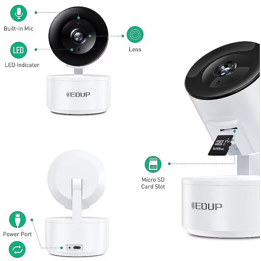 title_en - EDUP EH-2048P17 V2 Smart Home IP Camera Wi-Fi / PTZ 350° / 2K H.264 / microSD / Audio / IR WDR / USB-C