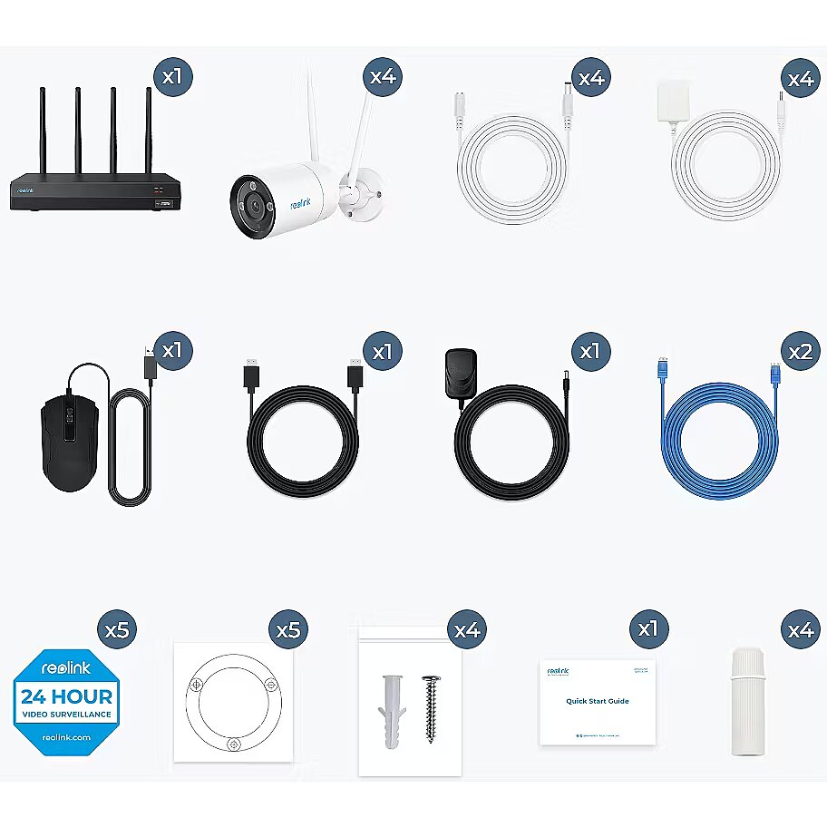 LongProductName - 4 x W330C + RLN12W, 12-Ch NVR, 2TB HDD, WiFi 6 2.4/5GHz