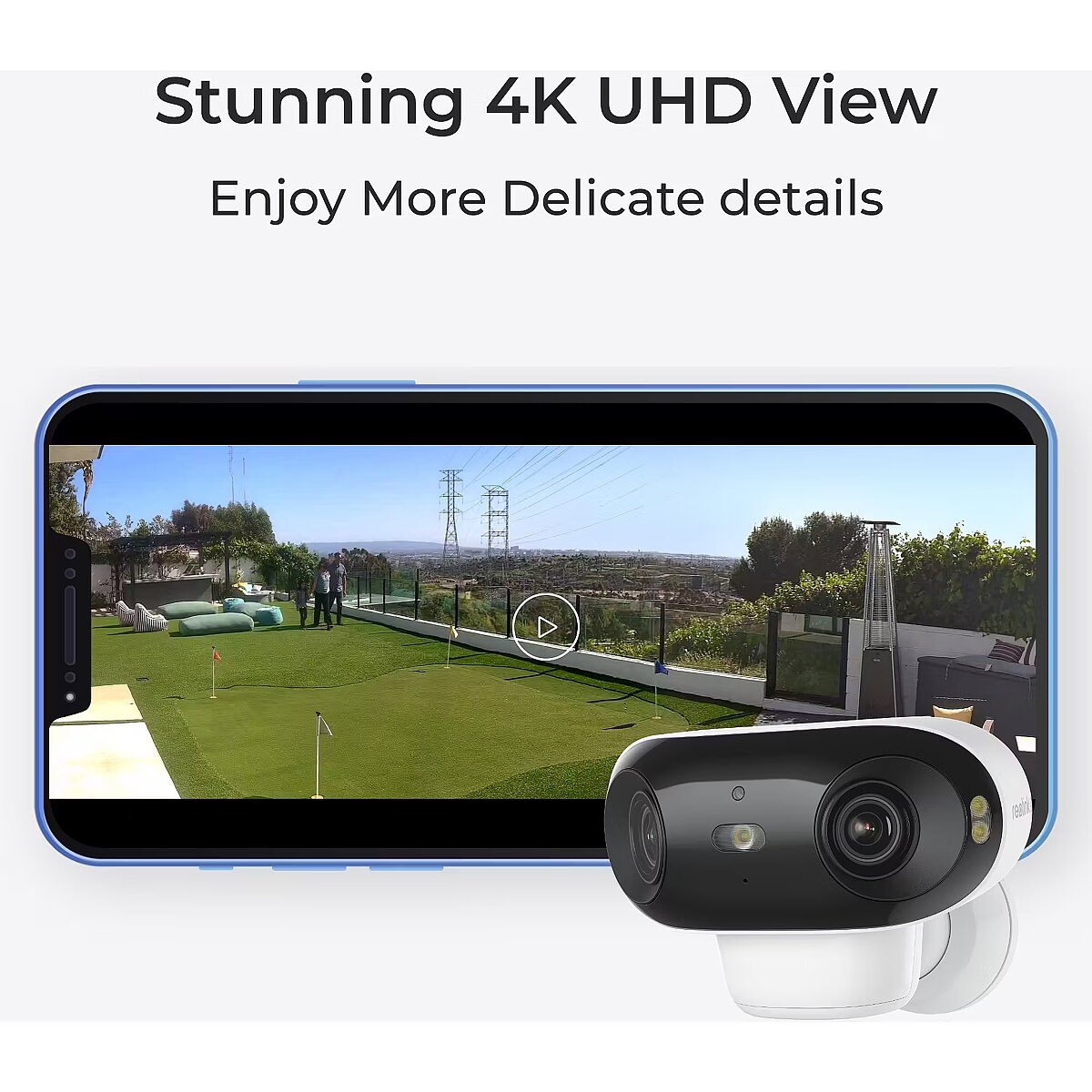 LongDesc - 180° blindspot-free, 4K color vision day and night. The Reolink Argus Series B740X is a trailblazing 4K UHD 180° outdoor battery security camera, eliminating blind spots with its unprecedented field of view and ColorX full-color night vision. It features dual-lens technology for seamless wide-angle monitoring, AI-powered motion detection that distinguishes humans, vehicles, and more, customizable alerts, and Dual Band Wi-Fi connectivity for smooth, lag-free streaming, delivering true peace of mind.4K 180° Ultra-Wide Field of ViewExperience unparalleled coverage with 4K resolution and a 180° field of view, eliminating blind spots and ensuring comprehensive surveillance for ultimate security.ColorX Tech: Full-Color Night VisionThe B740X features large F/1.0 aperture lenses and ColorX technology to deliver vivid full-color night vision even in low-light environments.30% More Battery LifeWith ColorX technology, full-color night vision works without IR lights or spotlights, saving 30% standby time. Enjoy longer-lasting performance even in low-light conditions.180° AI & Dual PIR DetectionWith 180° dual PIR sensors and AI technology, it significantly reduces false alarms and missed alerts. Enjoy more accurate detections and reliable security monitoring.2.4/5GHz Dual-Band Wi-Fi Enjoy the reliability of 2.4/5GHz dual-band Wi-Fi for uninterrupted surveillance and smooth live viewing anytime, anywhere.Talk Anytime, from AnywhereEngage in seamless communication with our two-way audio feature, allowing you to listen and talk to people in front of your camera in real-time from anywhere.Ready for Any WeatherWith an IP66 certification for weatherproofing, this camera offers robust defense against dust and rain, ensuring reliable performance in challenging outdoor conditions.Control Your Cameras, Hands-FreeWith Google Voice Control, you can effortlessly access your camera using simple voice commands, making monitoring your home a breeze.Magical Time Lapse VideosEasily observe hours, days, or even weeks of footage condensed into just a few captivating minutes.Non-Stop Power SupplyEnjoy continuous operation with a rechargeable battery and energy-efficient 3W/6W solar panel, even in places without power.