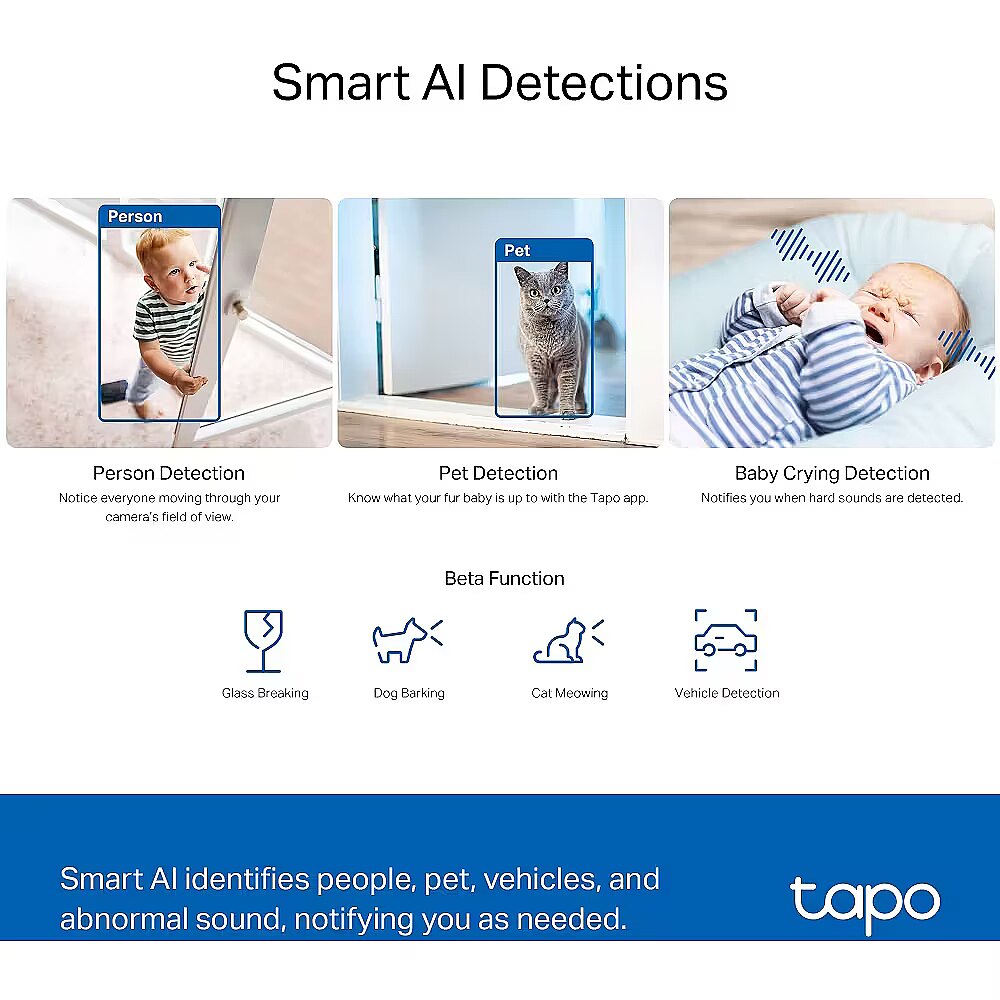productName - TP-Link Tapo Pan/Tilt AI Home Security Wi-Fi Camera SPEC: 3K 5MP (2880×1620), 2.4 GHz, Horizontal 360º