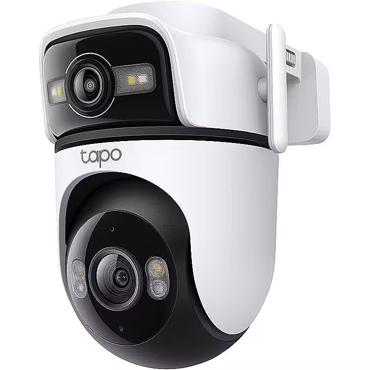 LongDesc - Wide View, Sharp Zoom, Full ProtectionOutdoor Dual Lens Pan/Tilt Security CameraPan, Tilt, and Capture It AllThe top wide-angle lens is fixed in place but supports manual Pan (270°) and Tilt (-30° to -10°) adjustment for the best viewing angle. The bottom telephoto lens features automatic pan and tilt to follow motion or shift focus between different areas as needed.Synchronised Smart TrackingThe two cameras dynamically work together to seamlessly follow movement–when the fixed lens detects events like motion, people, and pets, the pan/tilt lens will automatically pivot to focus on and track the moving object.Magnify Details with Telephoto LensThe 6mm telephoto lens delivers 3× clarity compared to standard lens and supports up to 10.8× digital zoom, ensuring every detail is clearly visible when you zoom in.Panoramic Coverage of Two Areas, SimultaneouslyMonitor two separate areas at the same time with just one powerful camera. Reduce blind spots and get a more thorough, comprehensive overview of your home.Instant Detail with One-Tap Smart FocusOne tap for instant clarity: select an area in the wide-angle view, and the pan/tilt camera will focus on it instantly.Smarter, More Accurate Notifications Powered by AIStay informed with smart AI detection that recognises and notifies you of people, pets, and vehicles – all without any subscription fees. Tailor your alerts by selecting which types of detection will trigger notifications.Smart & Versatile Night Vision ModesChoose from vibrant full-colour with spotlights, discreet black-and-white infrared, or an automatic Smart Mode based on AI light detection for optimal clarity in any nighttime scenario.Reliable Connectivity with Ethernet SupportEnsure a more stable and consistent connection for your camera with Ethernet support. Ideal for areas with weak Wi-Fi, an Ethernet connection guarantees smooth live streaming and faster data transmission.Patrol ModeSet the camera to automatically move between up to 8 preset viewing points at set times.Engineered for Weather ResilienceDelivers reliable surveillance through rain, snow, dust, and scorching heat. Monitor your property with confidence, no matter the weather.Pair with Smart AssistantsIncludes seamless integration with Amazon Alexa, Google Assistant, and Samsung SmartThings. View live streams on your Echo Show or Chromecast.Two-Way AudioBuilt-in premium microphone and speakers ensure you can hear and be heard with exceptional clarity.Adaptable Installation OptionsTapo C545D can be securely mounted on a wall, affixed to the celling, or even held by a rod - designed to withstand the elements and deliver dependable monitoring across diverse outdoor settings.
