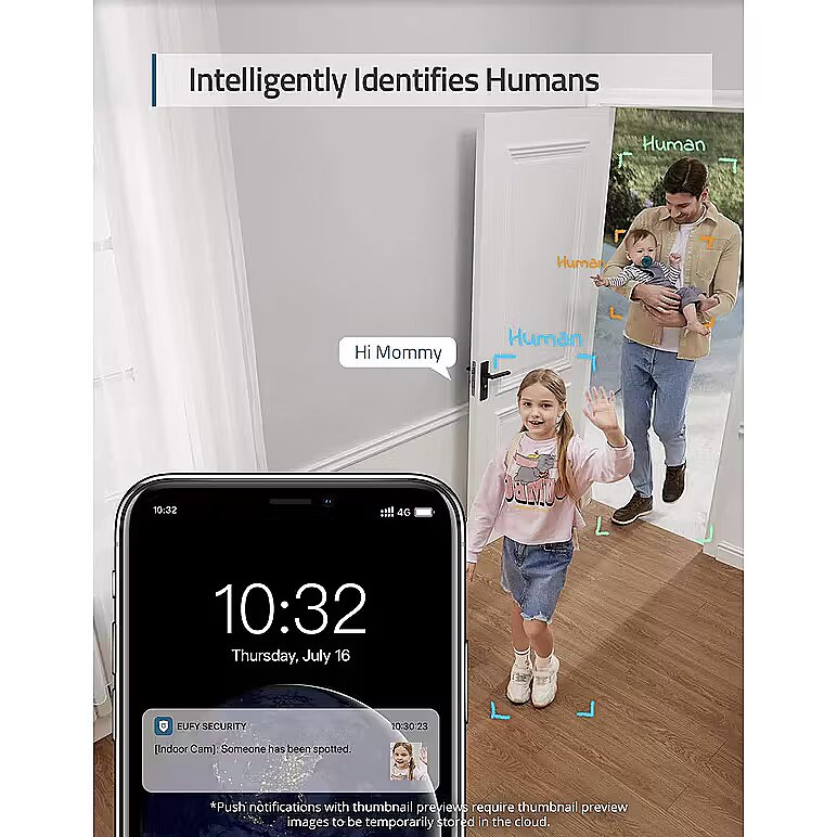 LongDesc - Mājas drošības iekštelpu kamera, cilvēku un mājdzīvnieku mākslīgais intelekts, darbojas ar balss asistentiem, kustību izsekošana, nakts redzamība, nepieciešama MicroSD karte, mājas bāze nav nepieciešama.Zināt, kad esat vajadzīgsIebūvētais mākslīgais intelekts informē par pārmērīgu trokšņu līmeni, lai jūs zinātu, kad jūsu mazulim ir nepieciešama uzmanība.Tūlītēja noteikšanaTūlīt pēc kustības konstatēšanas kamera sāks ierakstīšanu un nosūtīs paziņojumu, ja vēlaties redzēt, kas notiek.Aktivitātes zonasViņš saņems tikai tos brīdinājumus, kas ir svarīgi. Pielāgojiet zonu, kurā notiek detektēšana, atbilstoši savam mājoklim.Skatīšanās naktīPaturiet acis uz jebkuru telpu pat vājā apgaismojumā.Komunicējiet no kamerasSazināsiet reālajā laikā ar ikvienu, kas iet garām, izmantojot kamerā iebūvēto divvirzienu audio.Tūlītēji mobilie brīdinājumiSekundes laikā informē par aizdomīgām kustībām.Divādas glabāšanas iespējasSaglabājiet datus un ierakstus lokāli vai mākonī.Seko darbībaiKad tiek konstatēta kustība, kamera automātiski izseko un seko kustīgam objektam.