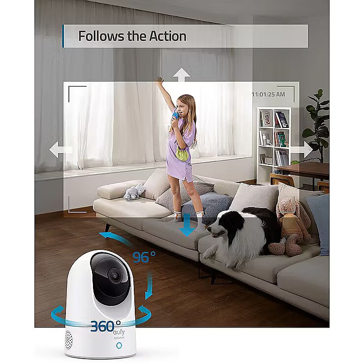 Description - Anker Indoor Cam 2K Pan & Tilt 2K Pan and Tilt Plug-in Indoor Security Camera, Home Security Camera for Indoor Surveillance, Human and Pet AI, Voice Assistant Compatibility, Motion Tracking, Night Vision. Relevant Recordings: The on-device AI determines whether a human or pet is present and only records when an event of interest occurs. The Key is in the Detail: View every event in up to 2K clarity (1080P while using HomeKit) so you see exactly what is happening inside your home. Smart Integration: Connect your Indoor Cam to Apple HomeKit (Please download our HomeKit User Guide in the product information section below), the Google Assistant, or Amazon Alexa for complete control over your surveillance. Follows the Action: When motion is detected the camera automatically tracks and follows the moving object. Pan the lens 360° horizontally or tilt it 96° vertically to get a clear view of the whole room. Communicate From Your Camera: Speak in real-time to anyone who passes via the camera’s built-in two-way audio.