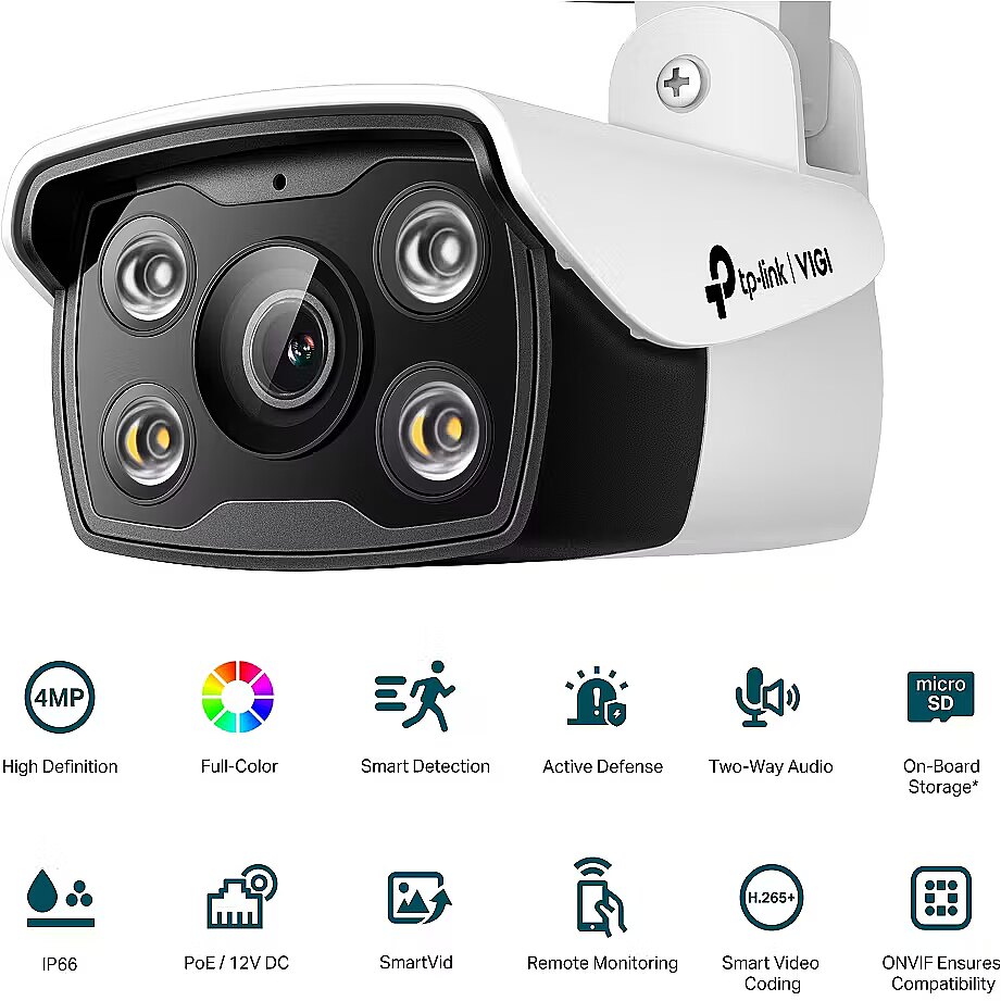 ShortSummaryDescription - TP-Link VIGI 4MP Outdoor Full-Color Bullet Network Camera, IP security camera, Outdoor, Wired, Ceiling/Wall/Pole, Black, White, Bullet