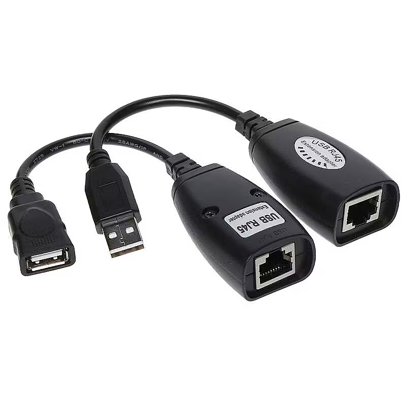 Apraksts - USB interfeisa pagarinātājs DVR/NVR peles vadībai pa UTP CAT 5/5E/6 kontaktdakšām/ligzdām: USB 1.1 , RJ45
