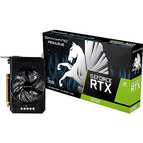 Technical_details - The Gainward GeForce RTX 3050 Pegasus is a high-end graphics card with the GeForce RTX 3050 GPU from NVIDIA. The powerful GeForce RTX 30 graphics card series is based on the NVIDIA Ampere architecture and offers new levels of gaming realism, speed and performance efficiency and realistic VR experiences. Other features include Real-Time Ray Tracing, NVIDIA Ansel, with extensive tools for creating screenshots in games as well as NVIDIA G-SYNC, G-SYNC HDR, DirectX 12 Ultimate, NVIDIA DLSS, PCI Express Gen 4, NVIDIA FreeStyle, NVIDIA ShadowPlay, NVIDIA Highlights, Vulkan RT API and OpenGL 4.6. The GPU installed on the Gainward GeForce RTX 3050 Pegasus has 2304 shader units. The 6 GB GDDR6 memory has a 96-bit memory controller. Item no.: 100036848 Graphics card type EAN 4710562244182 Manufacturer no. 4182 Slot PCIe x16 version 4.0 occupied slots 2 GPU name NVIDIA GeForce RTX 3050 Required power supply power at least 300 W Memory capacity 6 GB (GDDR6) Connections 1x DVI-D, 1x HDMI version 2.1, 1x Displayport version 1.4a Power supply Average consumption 70 W Cooling Cooling with fan Special features VR Ready Yes Operating Systems Supports Linux, Windows 7, Windows 8, Windows 10 Feature Microsoft DirectX 12 Ultimate, NVIDIA DLSS, PCI Express Gen 4, NVIDIA GeForce Experience, NVIDIA Ansel, NVIDIA FreeStyle, NVIDIA ShadowPlay, NVIDIA Highlights, NVIDIA G-SYNC, Game Ready-driver, NVIDIA Studio-driver, NVIDIA GPU Boost, Vulkan RT API, OpenGL 4.6 Further information Maximum digital resolution: 7680x4320 px Note The card has a PCIe x8 connection Dimensions Width: 117mm x Height: 40mm x Depth/Length: 162mm