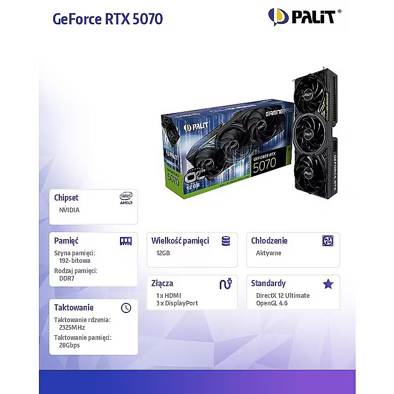 Palit GeForce RTX 5070, 12GB GDDR7, GamingPro OC (DLSS 4)
