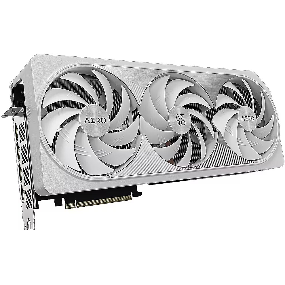 LongSummaryDescription - GIGABYTE AERO GeForce RTX 4090 OC 24G. Graphics processor family: NVIDIA, Graphics processor: GeForce RTX 4090, Processor frequency: 2520 MHz. Discrete graphics card memory: 24 GB, Graphics card memory type: GDDR6X, Memory bus: 384 bit, Memory clock speed: 2100 MHz. Maximum resolution: 7680 x 4320 pixels. DirectX version: 12.0, OpenGL version: 4.6. Interface type: PCI Express 4.0. Cooling type: Active, Number of fans: 3 fan(s)