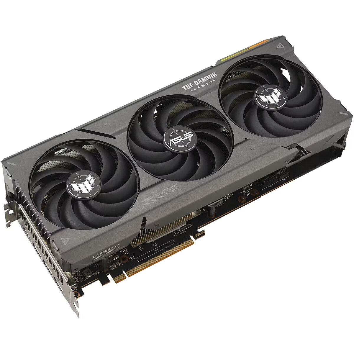 LongSummaryDescription - ASUS TUF Gaming TUF-RX7800XT-O16G-GAMING. Graphics processor family: AMD, Graphics processor: Radeon RX 7800 XT. Discrete graphics card memory: 16 GB, Graphics card memory type: GDDR6, Memory bus: 256 bit. Maximum resolution: 7680 x 4320 pixels. OpenGL version: 4.6. Interface type: PCI Express 4.0. Cooling type: Active, Number of fans: 3 fan(s), Illumination colour: Multi