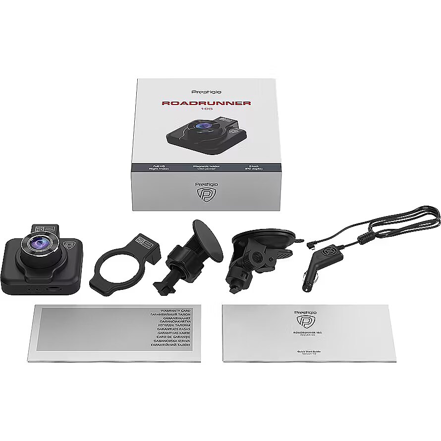 ProductDescription - Prestigio RoadRunner 185, 2.0'' IPS (320x240) display, FHD 1920x1080@30fps, HD 1280x720@30fps, Jieli AC5601, 2 MP CMOS GC2053 image sensor, 2 MP camera, 140° Viewing Angle, Micro USB, 180 mAh, Night Vision, Motion Detection, G-sensor, Cyclic Recording, color/Black, Plastic case