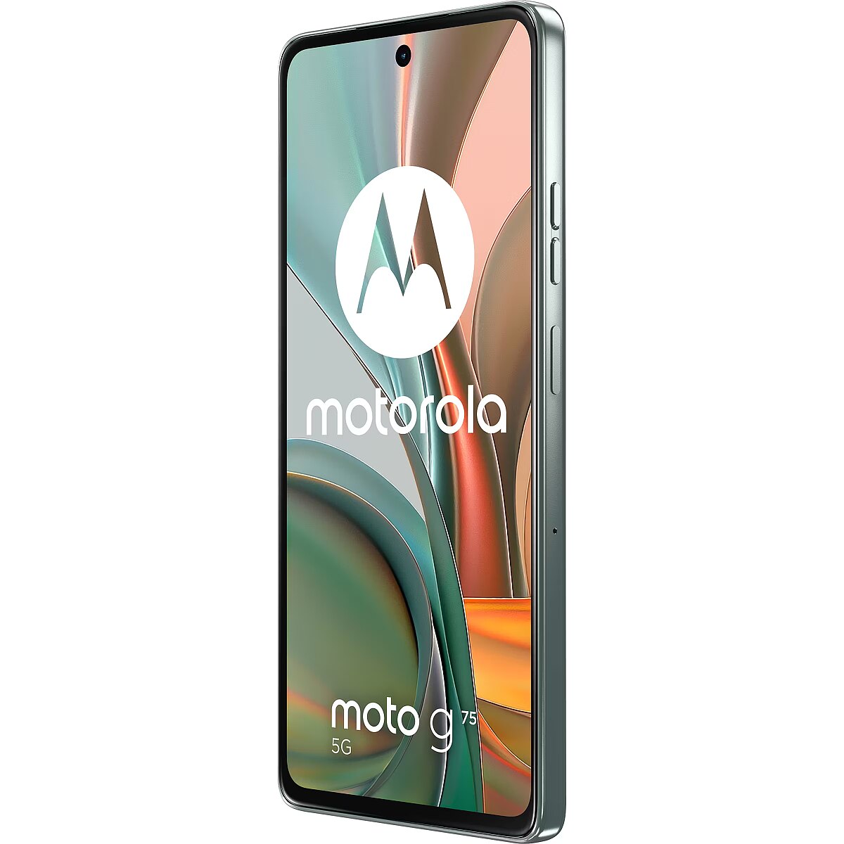 LongSummaryDescription - Motorola moto g75 5G. Display diagonal: 17.2 cm (6.78"), Display resolution: 2388 x 1080 pixels. Processor family: Qualcomm Snapdragon, Processor model: 6 Gen 3. RAM capacity: 8 GB, RAM type: LPDDR4X, Internal storage capacity: 256 GB. Rear camera resolution (numeric): 50 MP, Rear camera type: Dual camera. SIM card capability: Hybrid Dual SIM. Operating system installed: Android 14. Battery capacity: 5000 mAh. Product colour: Green. Weight: 208 g