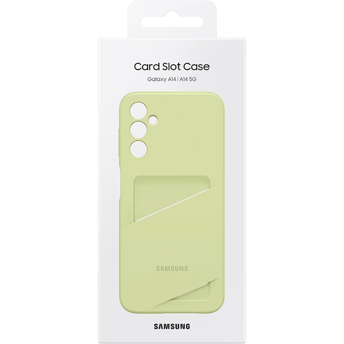 LongDesc - Style up with these 2 colour shadesThe sleek Galaxy A14 / A14 5G Card Slot Case comes in two delightful colours to give your phone some extra style – Black or Lime.Soft yet sturdyThe Galaxy A14 / A14 5G Card Slot Case is built with TPU[1] material to help protect your phone from daily scratches and drops, while also giving you the flexibility to take it off with ease.Go wallet-freeKeep a frequently used card close at hand. With the Galaxy A14 / A14 5G Card Slot Case, you can easily carry and use it without having to take out your wallet every time.
