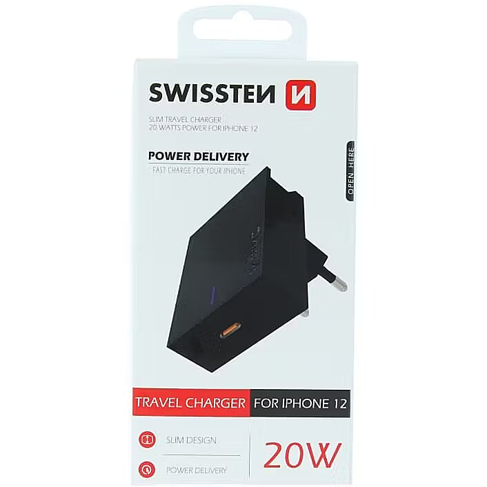 description_en - Unique SLIM charger with a power of 20W. The charger is equipped with powerdelivery technology for fast charging of the Iphone 12 smartphone. It can be used behind furniture, in a socket in an open space or anywhere as a smartphone holder. Packed in a SWISSTEN blister.