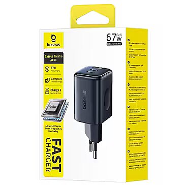 description_en - The Baseus PicoGo AE11 charger is designed for simultaneous charging of smartphones, tablets, laptops and other USB-powered devices. It features two USB-C ports and one USB-A port with a total output power of up to 67 W. The charger supports modern fast-charging protocols and automatically distributes power between connected devices. Its compact form factor makes it suitable for everyday use and travel. Charging cables are not included.