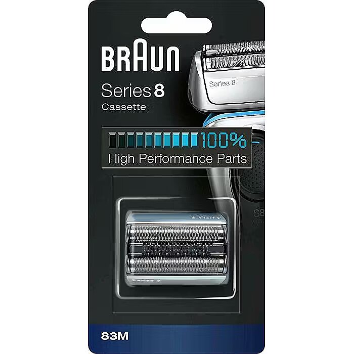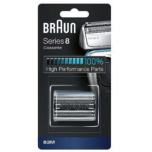 LongSummaryDescription - Braun Series 8 Cassette 83M. Product type: Shaving head, Number of shaver heads: 1 head(s), Product colour: Silver. Weight: 16 g. Package width: 80 mm, Package depth: 21.8 mm, Package height: 147 mm
