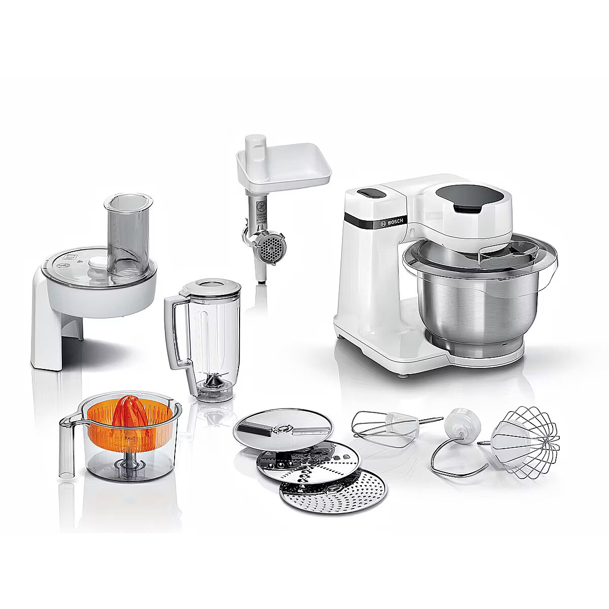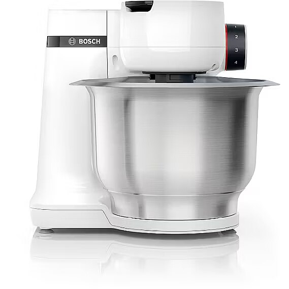 LongSummaryDescription - Bosch Serie 2 MUMS2EW40. Bowl capacity: 3.8 L, Product colour: White, Control type: Buttons. Bowl material: Stainless steel, Housing material: Metal, Plastic. Power: 700 W, AC input voltage: 220 - 240 V, AC input frequency: 50 - 60 Hz. Width: 266 mm, Depth: 266 mm, Height: 277 mm. Package width: 350 mm, Package depth: 390 mm, Package height: 595 mm