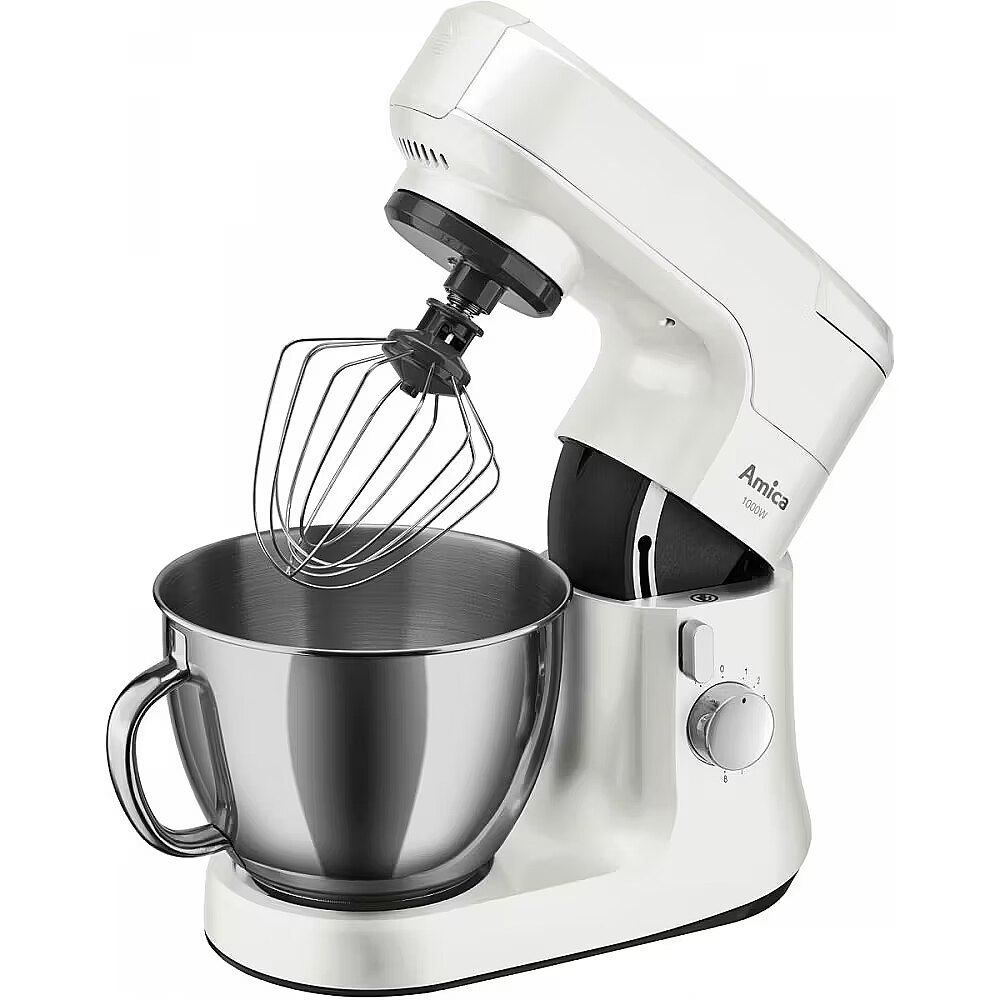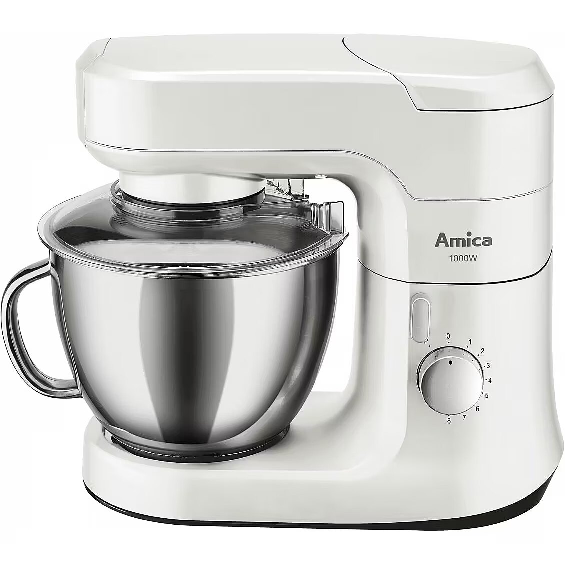 DziÄki duĹźej 4,5-litrowej misie bez trudu zaspokoisz potrzeby kulinarne caĹej rodziny. Zastosowana stal nierdzewna to gwarancja trwaĹoĹci, a praktyczna osĹona zapobiega rozchlapywaniu ciasta podczas pracy mieszadeĹ.