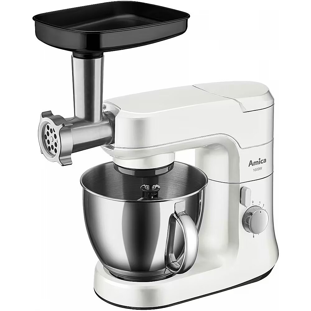 Iekļautie piederumi - Malšanas ierīce Gaļasmašīna Gaļasmašīnas uzgalis Kebbe uzgalis 4,5 l nerūsējošā tērauda bļoda ar korpusu Noņemama pilienu paplāte Maisīšanas veidi: mikseris, putukrāsnis, āķis.