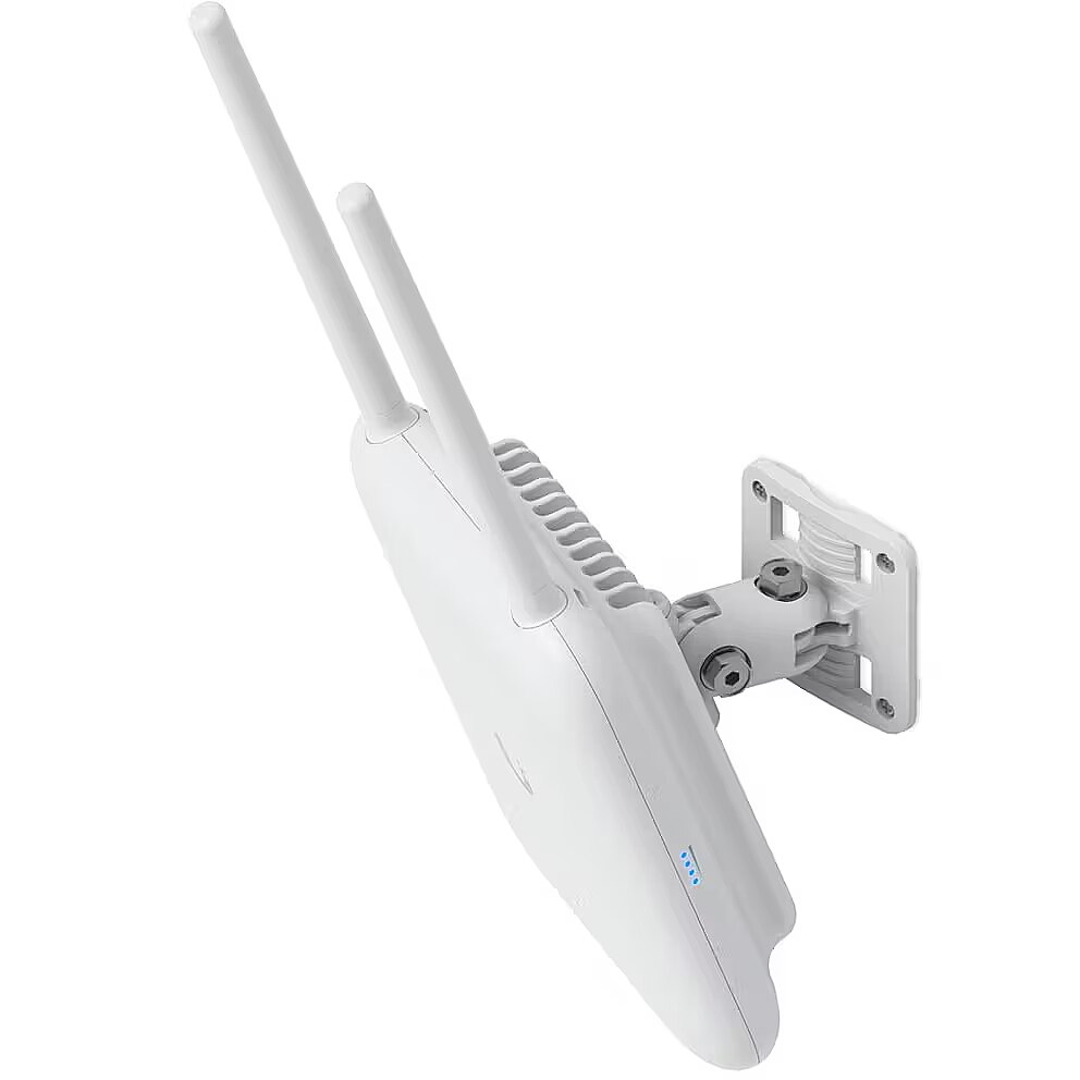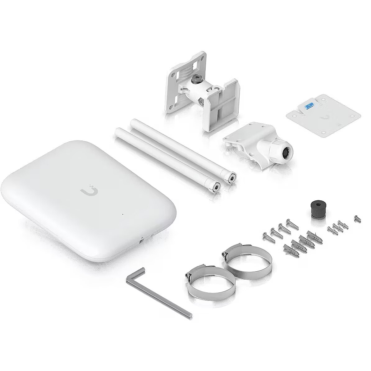 Apraksts - UBIQUITI U7 Pro Outdoor All-weather IP67 WiFi 7 AP ar 6 telpiskajām plūsmām, integrētu virziena antenu un šarnīrveida montāžas kronšteinu.